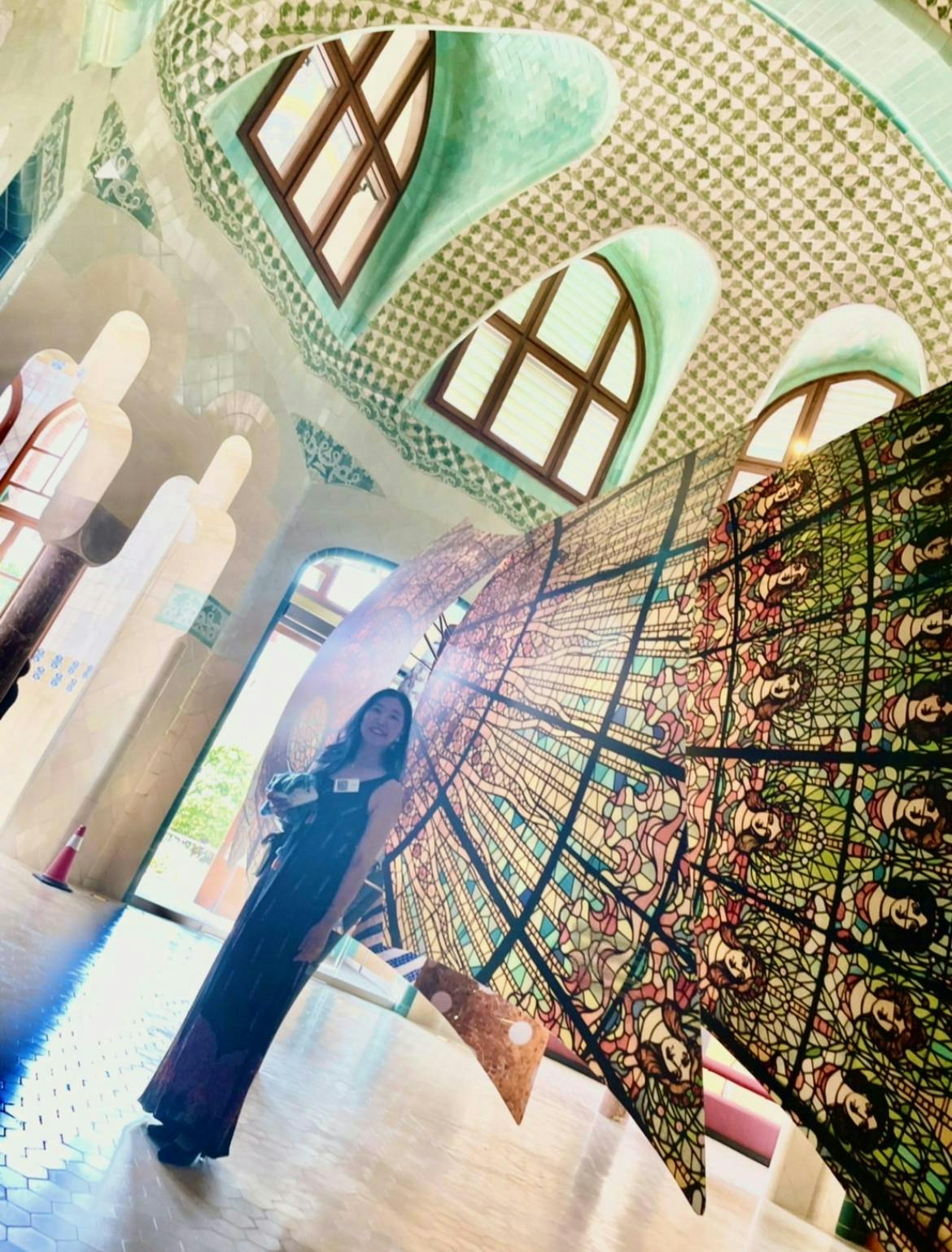 天井のステンドガラスが展示されたものが