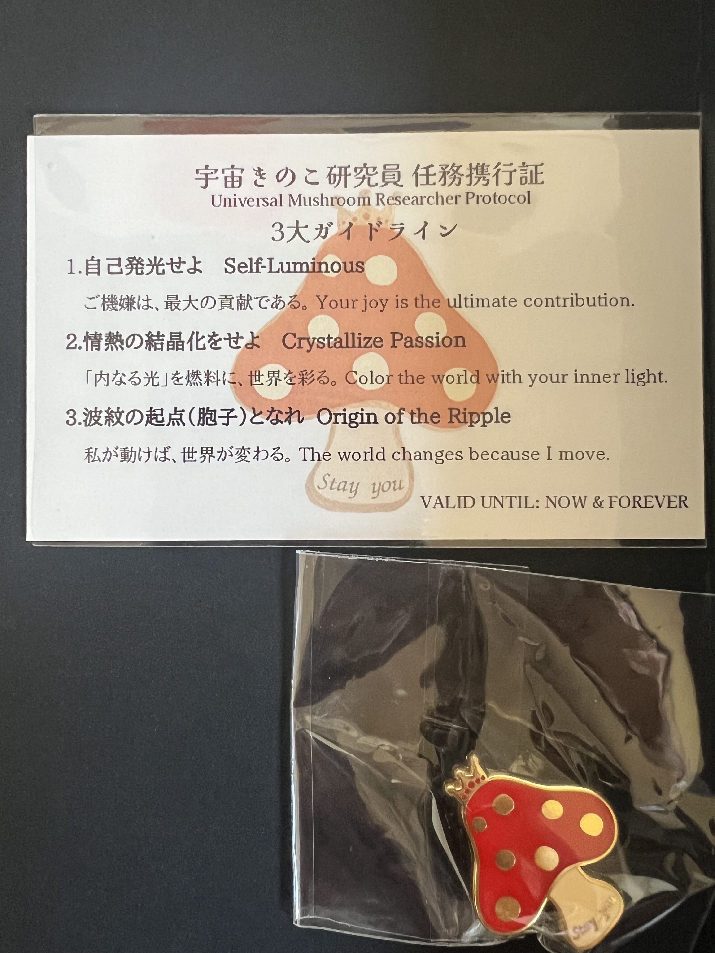 ついに宇宙きのこ研究員バッチが届きました!!