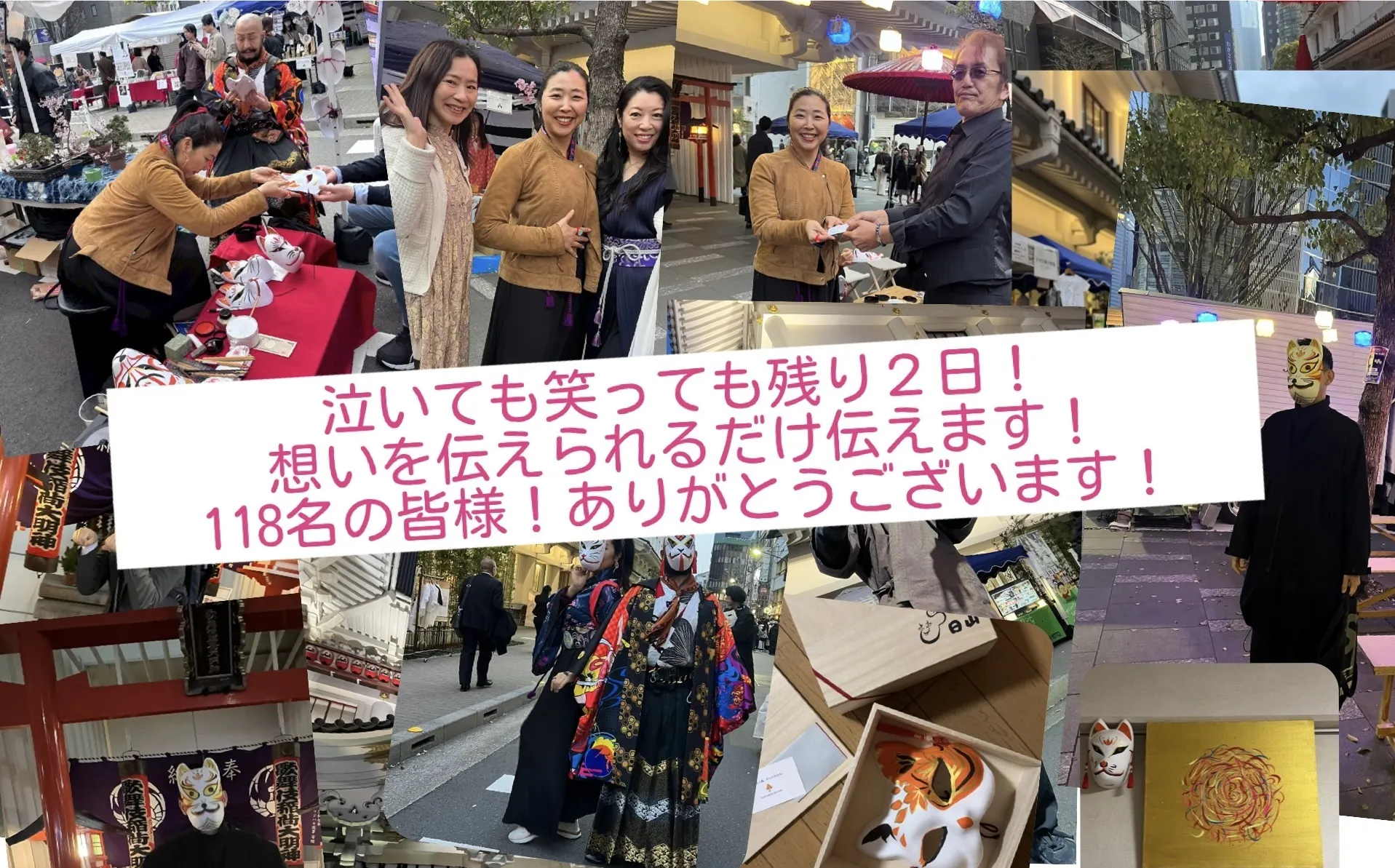 2026/03/29 10:00おはようございます!ファンタジスタまゆみです!現在118名の方が、翼になってくださり、ほんとうに感謝しております!!残り2日!昨日も歌舞伎座横の東銀座通りのお祭りで、狐さんのお面のワークショップをさせていただいてるのですが、みんなその人らしい作品になって素晴らしかったです!!!そして、思いました。。銀座のエナジーいいなーぁと!!来年はついにいつかと思っていた銀座で個展したいなと!!このクラファンは、たくさんのことを気づき学ばさせていただきました!!!やらなければ、当事者にならなければわからないこと。近くにくればくるほど、その面白さや、みんなが私を信じてくれる力が、さらなるパワーをくれているなと!!本当に感謝しています!明日明後日二日間は、standfmや、インスタライブなど、バンバンやってきます!!未来の私を決めて、そこへ歩みます!今日は歌舞伎座横にいますっ! もっと見る