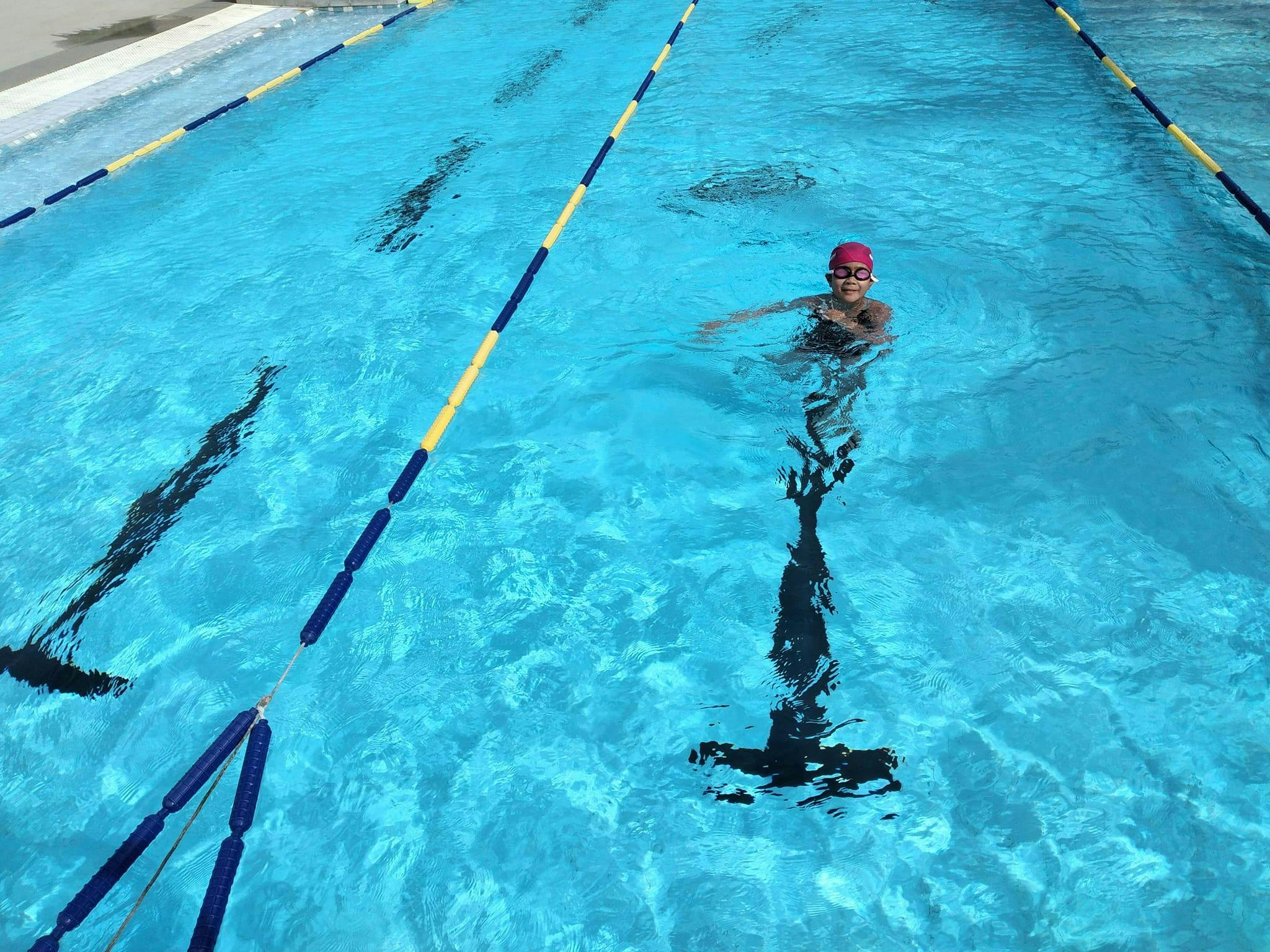 日本の素晴らしい競泳用プールで、思う存分、泳がせてあげたい!