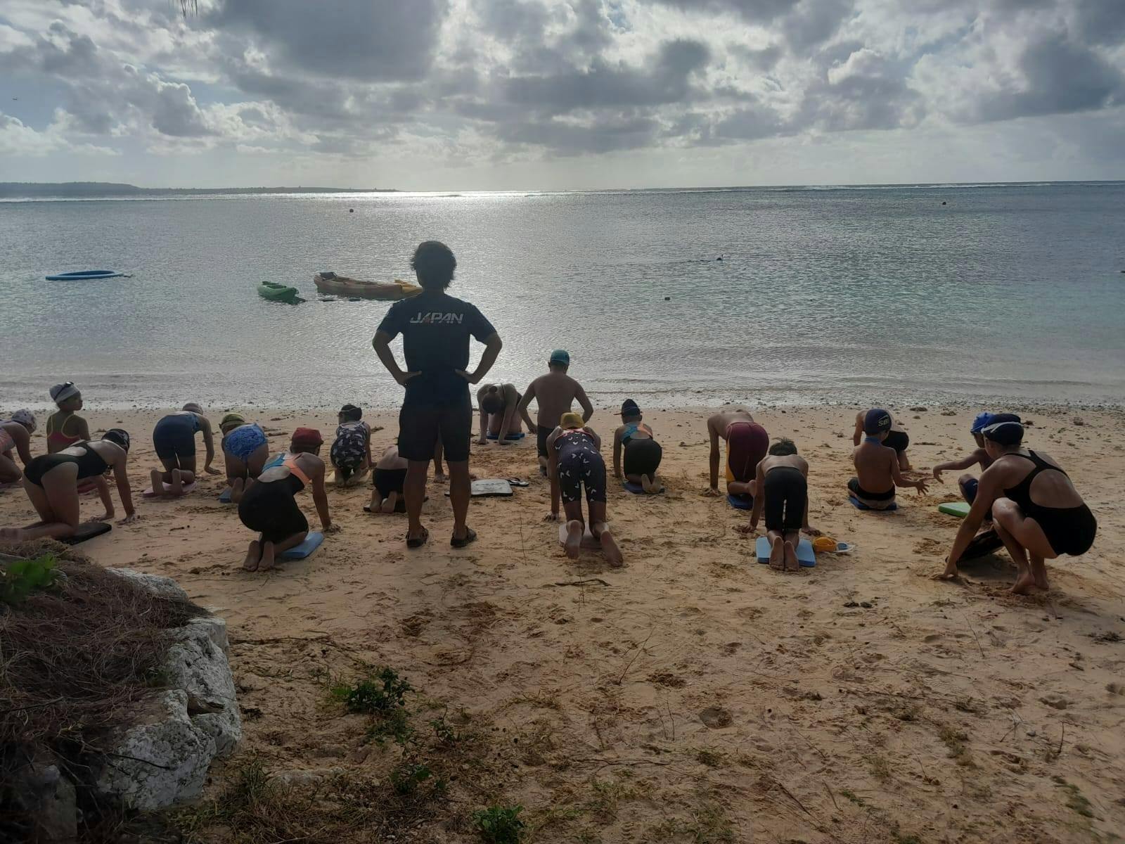 サイパンのスイマーに空手の指導を行った時の加藤氏。