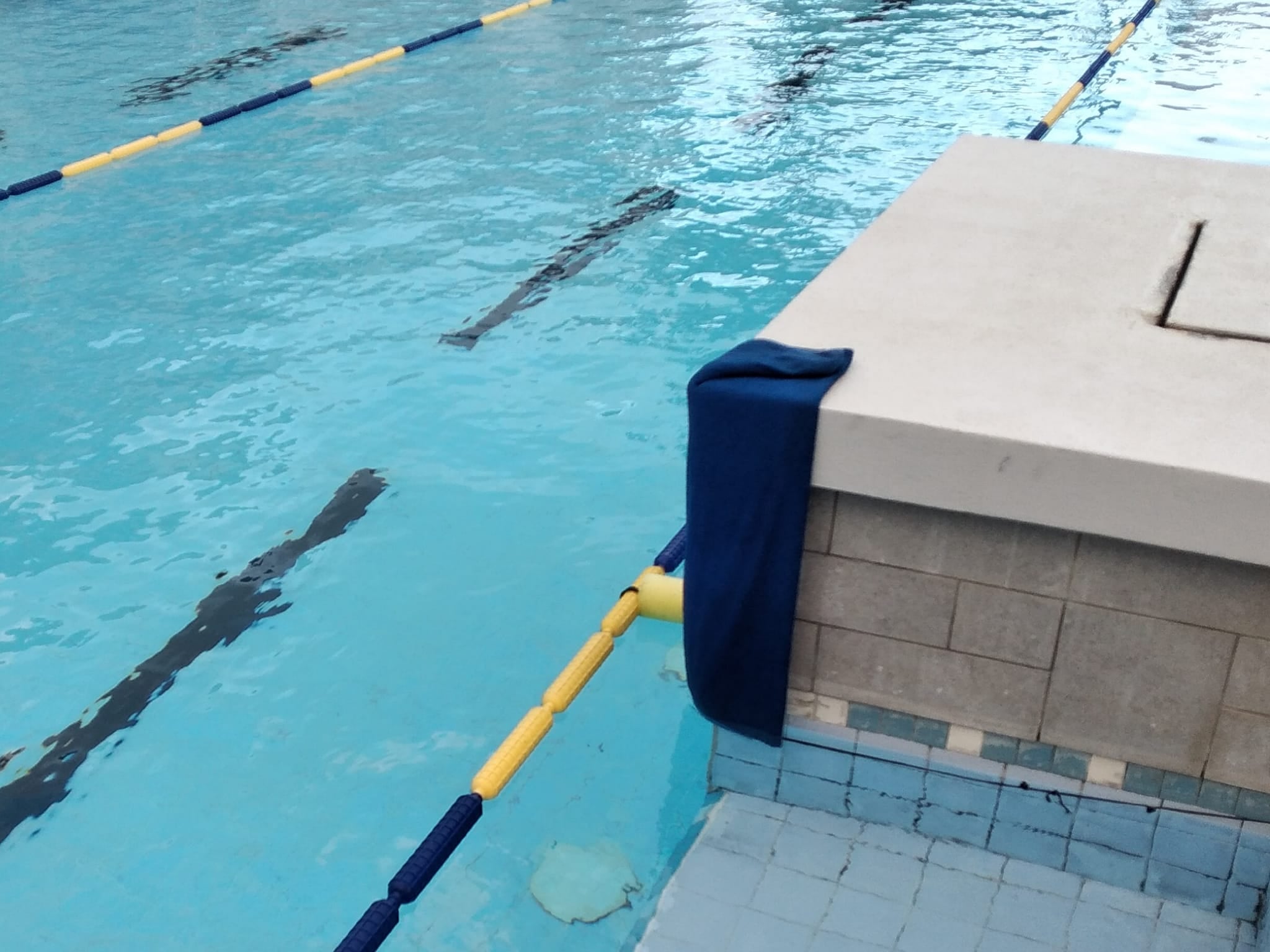 塩っぱいプールで、底には蟹が居る事も。強風で5mフラッグが弓なりになり背泳の選手は頭をぶつけていました。コースロープも劣化して所々割れていて選手は傷だらけ...