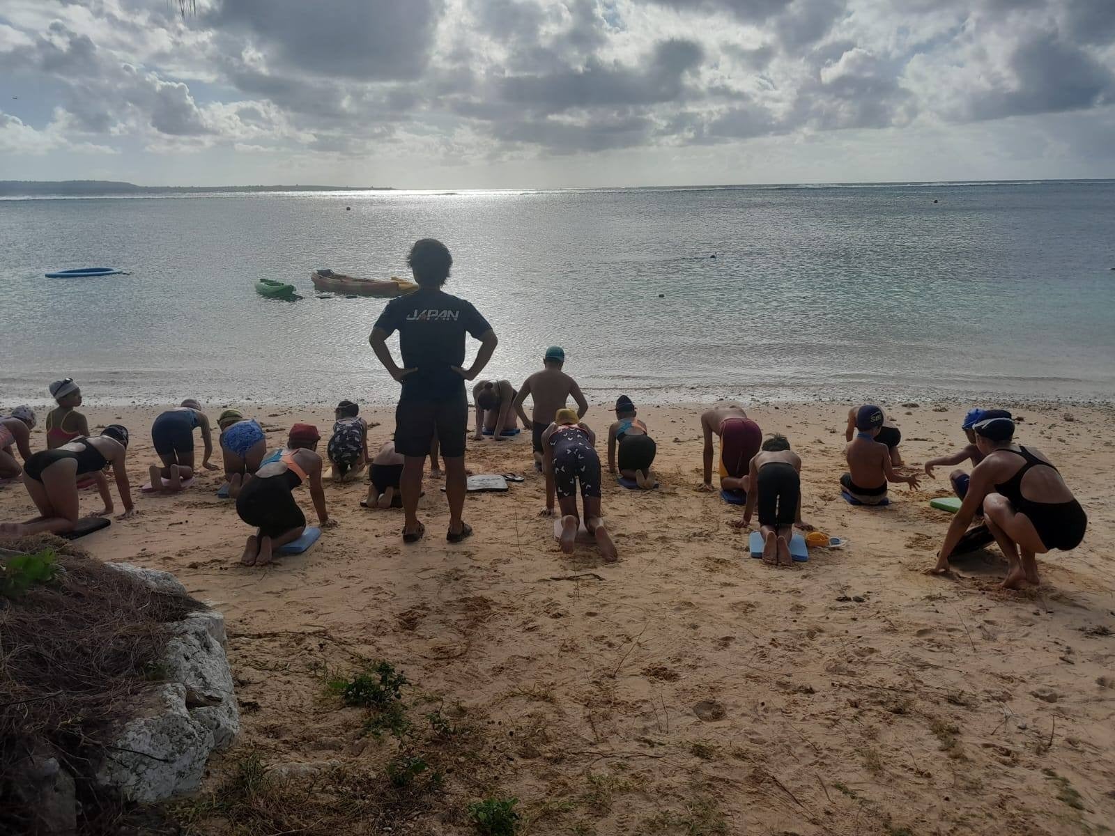 海で練習するサイパンの子どもたち