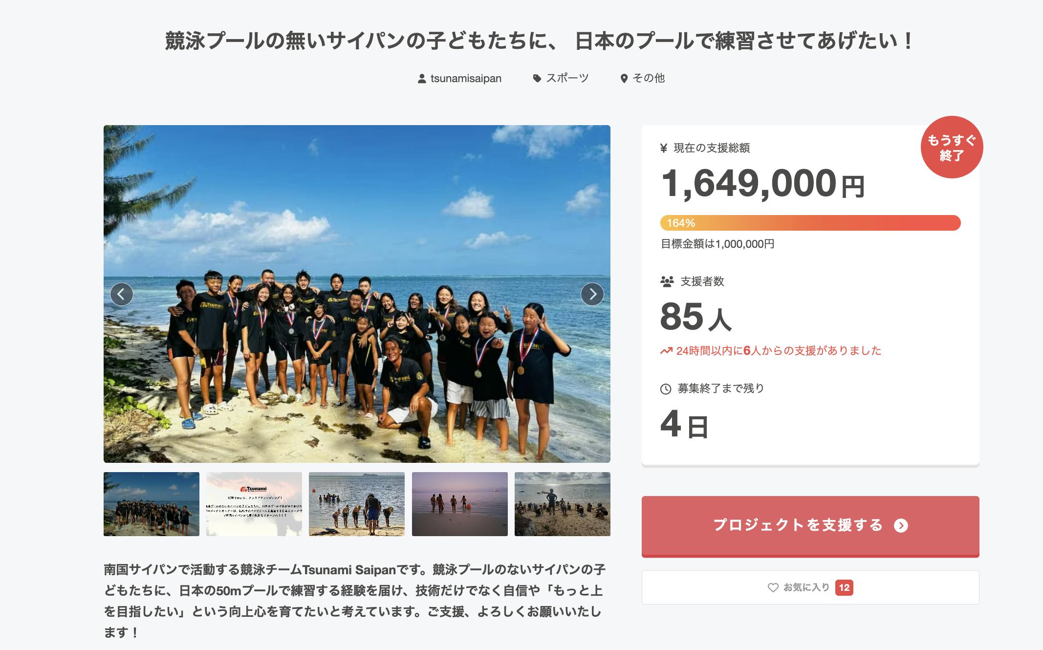 クラウドファンディングは、今月一杯(2026/02/28 23:59)まであります。すでにプロジェクトは達成しておりますが、この機会にもっともっと沢山の人にTsunamiサイパンの子供達の奮闘を知ってもらいたいです。