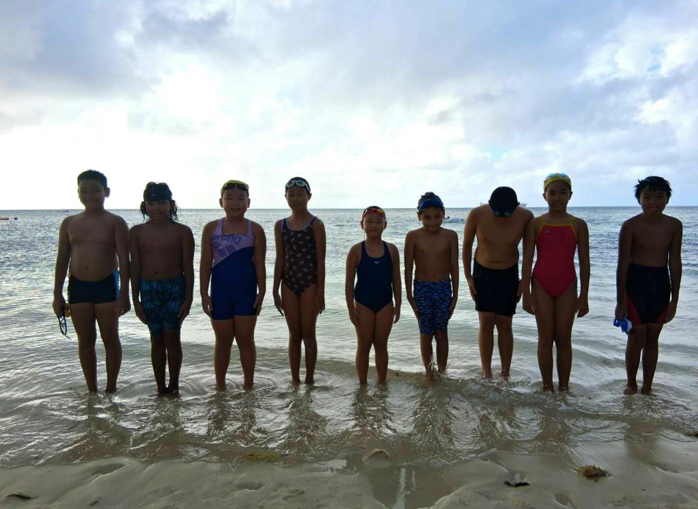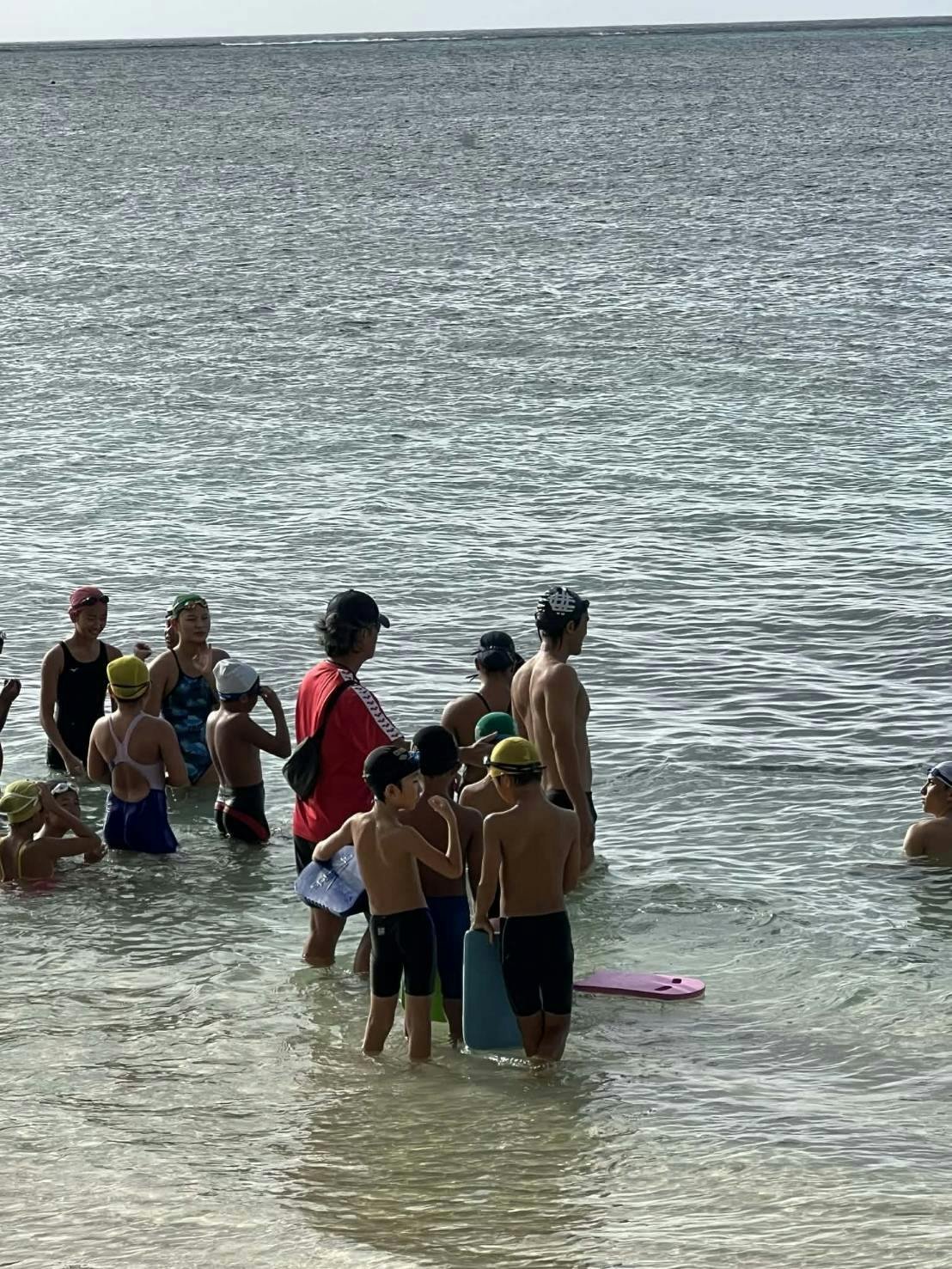 普段は8歳の子達は安全確保の観点からあまり海での練習はしないのですが、明日、オープンウオーターの大会が開催されるので、今日は8歳の育成クラスも海で泳ぎました。