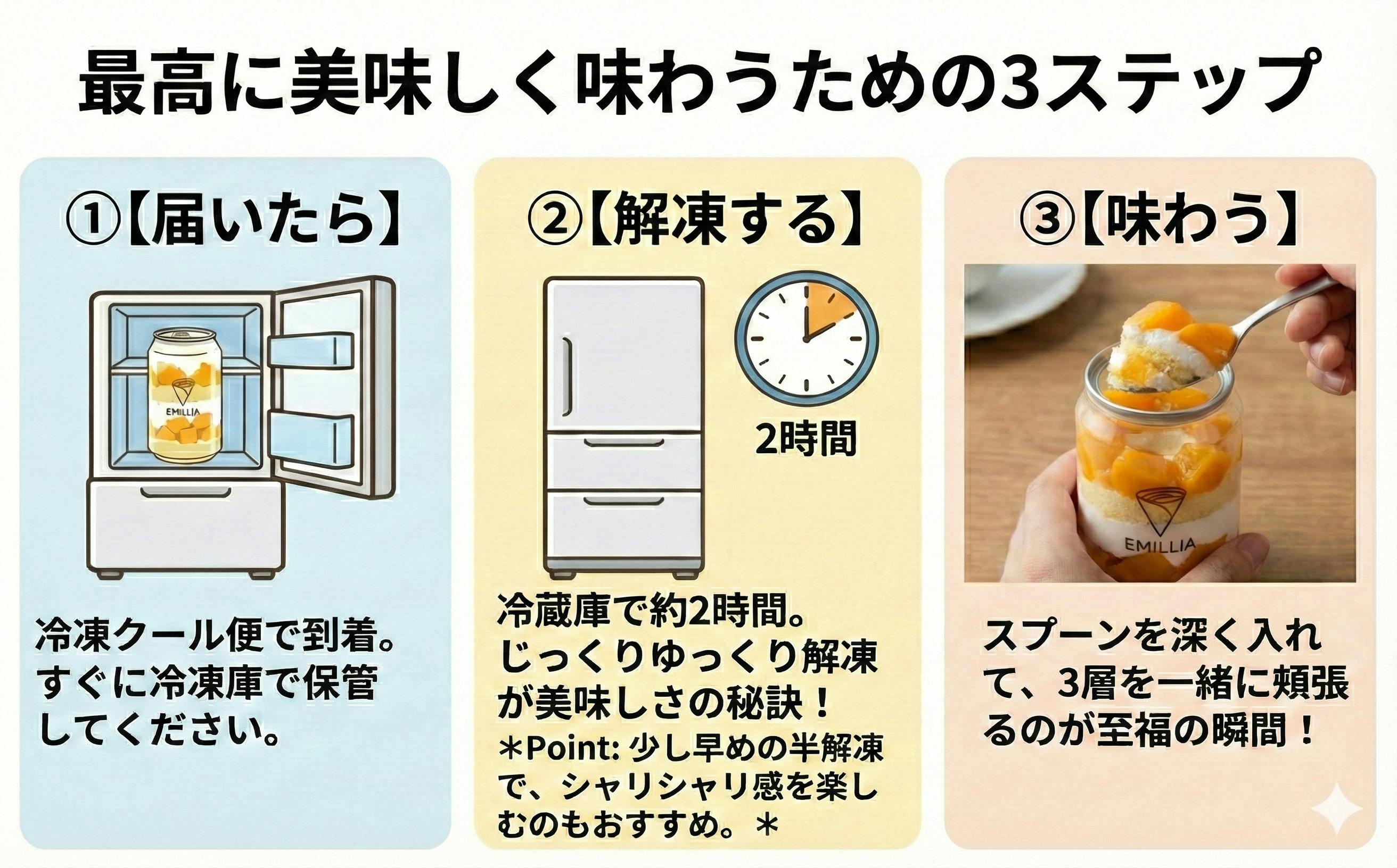 【届いたら】 冷凍クール便で到着します。すぐに冷凍庫へ保管してください。