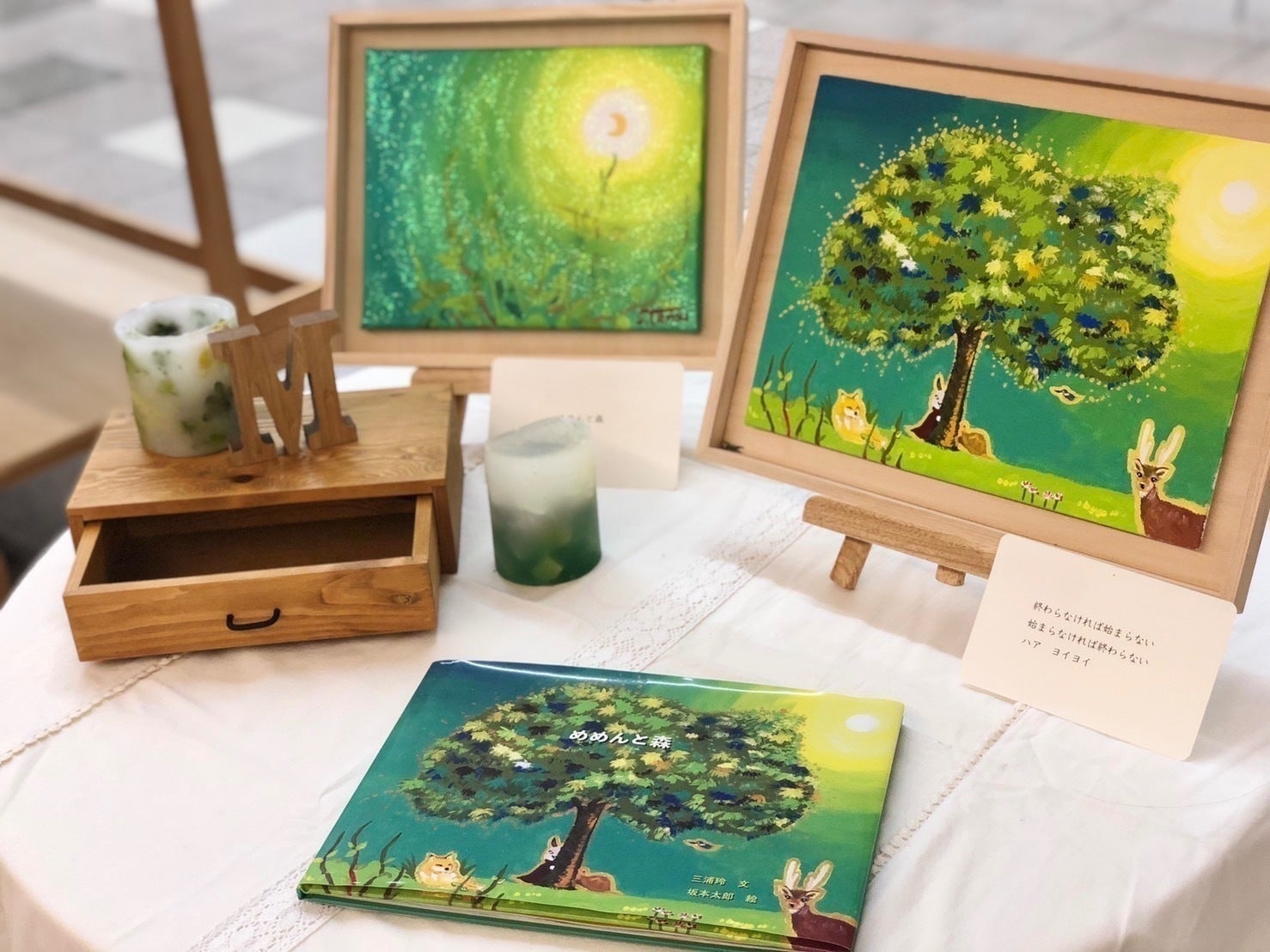 私たちの地元高知県では4回めめんと森の原画をお披露目させて頂きました。昨年移住先の九州大分の地で5回目の原画展が叶い、第6回目はまず現在居住地である大分県日田市で絵本のお披露目販売会をしたいと考えています。また順調に進みましたら、わたくし太郎が大学時代を過ごした地である福岡でも原画展を開催したいと考えています。三浦氏が療養された場所から近くでもあります。