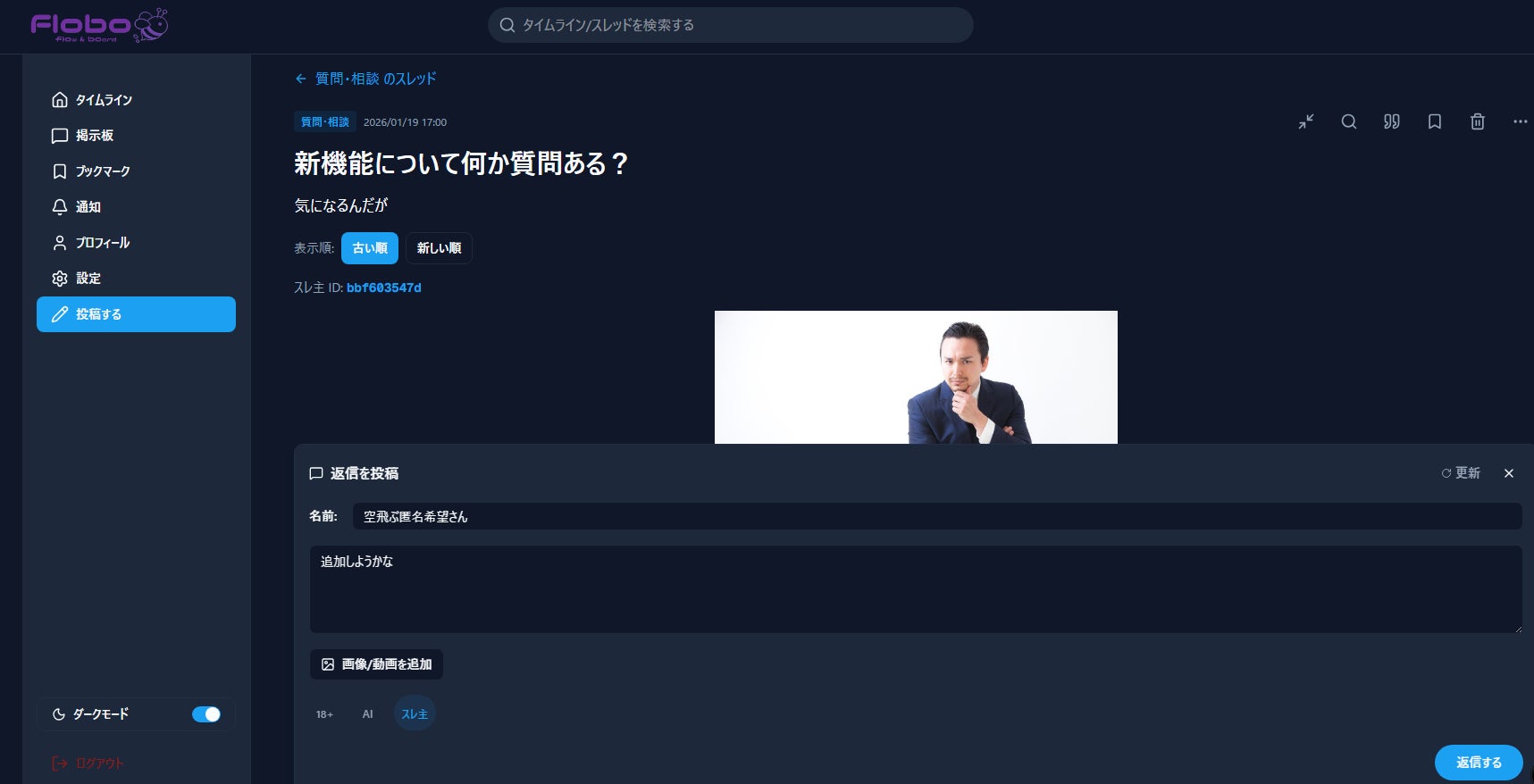 タイムラインと掲示板を組み合わせた、ハイブリッドなSNS、Flobo(フロボ)という発想です。