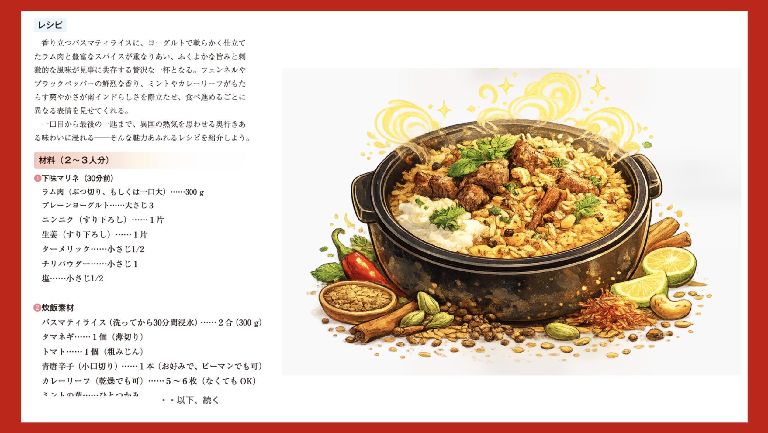 各レシピの冒頭には、必ず問いがあります。なぜこの国では、こういう味が生まれたのか?なぜこの料理は、祝祭や祈りと結びついたのか?なぜこの味は、こんなにも心に残るのか?料理をしながら、自然と「考えてしまう」構造になっています。これは、考えさせられる本ではなく、考えてしまう本です。