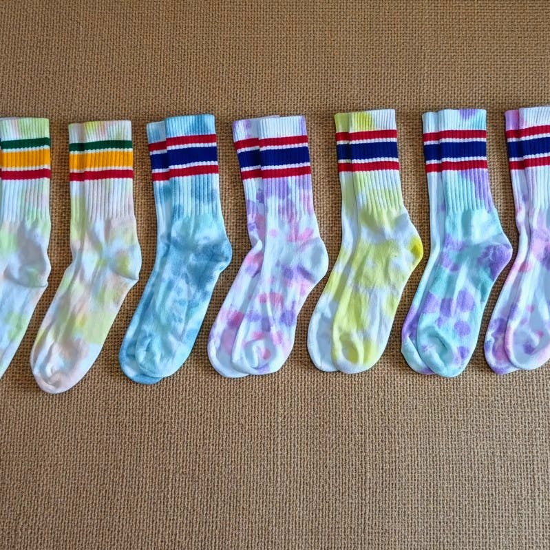 お店オリジナルカラーのタイダイ靴下の制作のご依頼を定期的に頂いてます