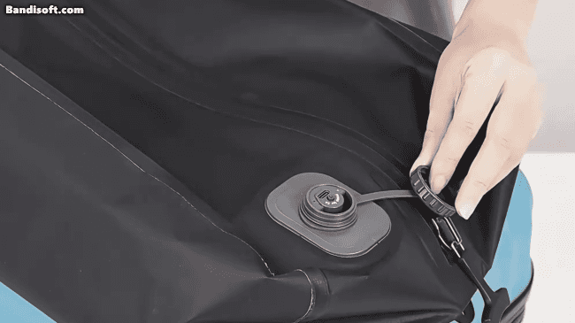 操作はとても簡単です。バッグ中央にある圧縮ボタンを約2秒間長押しするだけで、内蔵ポンプが自動で作動します。複雑な設定や力は必要ありません。