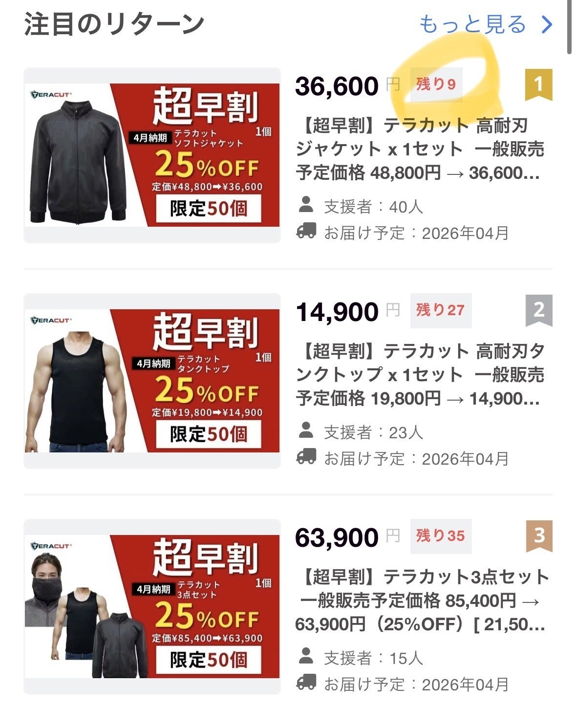 現在、テラカットジャケット【超早割】は残り9着となっています。