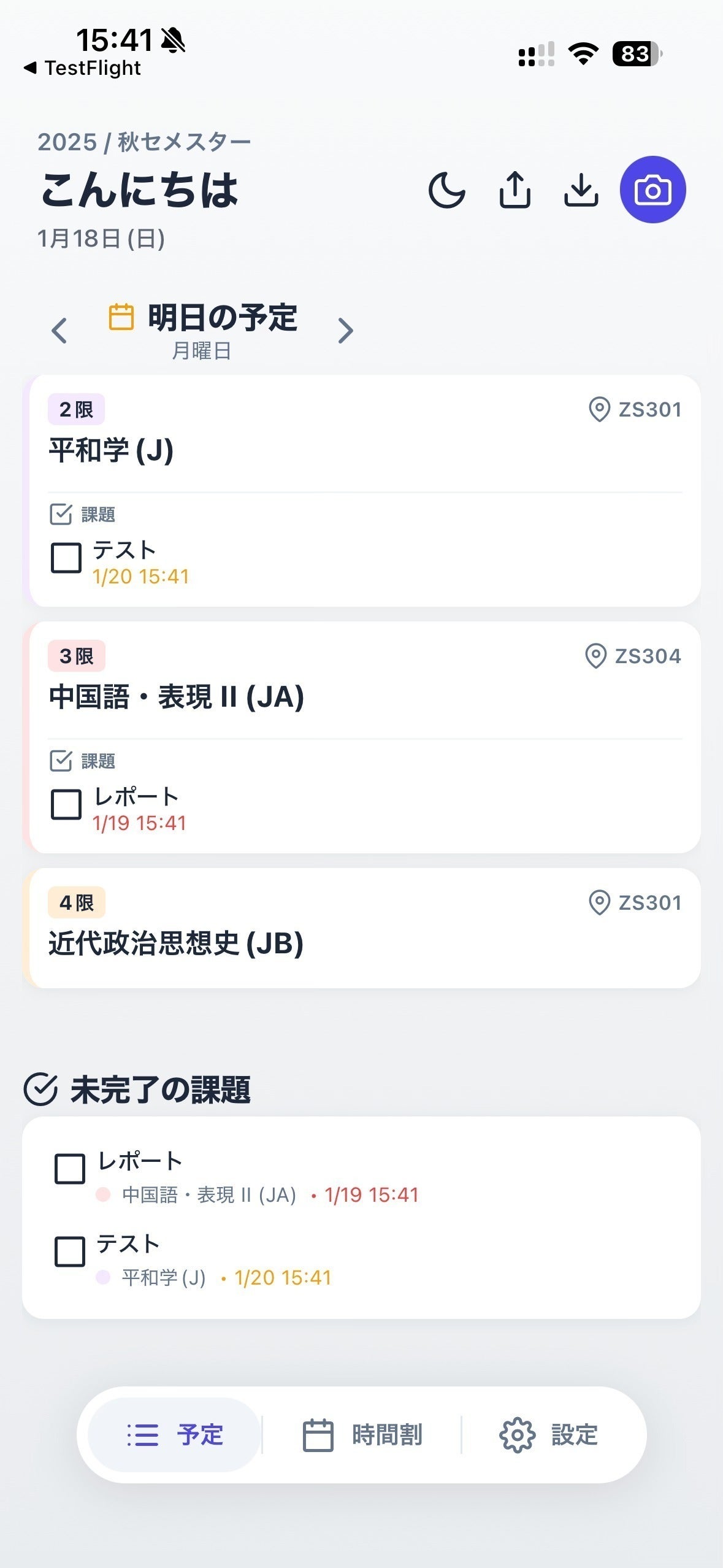 ・時間割のスクリーンショット(manabaなどの履修一覧画面)を読み込むだけで自動でAIがコマに授業を振り分けてくれます。授業前通知、メモ、画像添付、フォント&背景変更機能も搭載。課題一覧・授業一覧ウィジェットはios、android双方で対応。iosはロック画面にも配置可能です。
