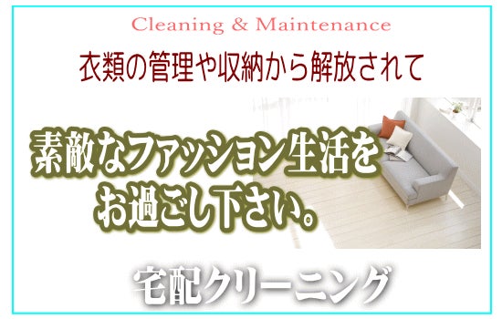 自宅に居ながらクリーニングをご利用されることで衣類の管理や手間から解放されて快適なファッション生活をお過ごしいただくとともにより高品質なクリーニングをご提供して事業の拡充をしていきます。