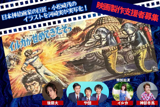我々の少年時代、少年誌を席巻した大巨匠画家の小松崎茂先生。そのイメージにはわたしも多大な影響をうけています。いま、先生の描かれた秀逸すぎるイルカのイラストを元に映画が撮れるとは夢にも思いませんでした。後藤大さん、や団さん、神部冬馬さん、そしてなんと、特別出演でシンガーソングライターのイルカさんなどのキャストも最高で、いままでにないどうかしている映画にしたいと思います。どうぞご支援のほどよろしくお願いいたします!!