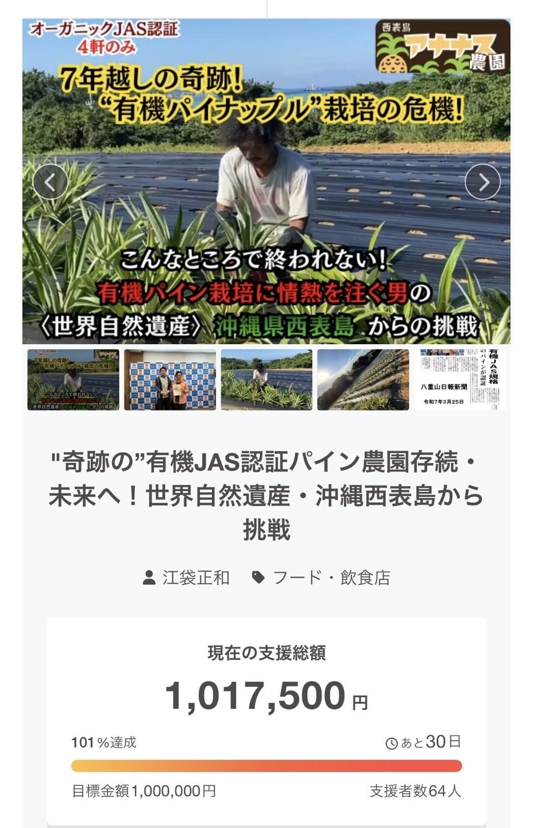 開始から5日目で、目標【100万円】を