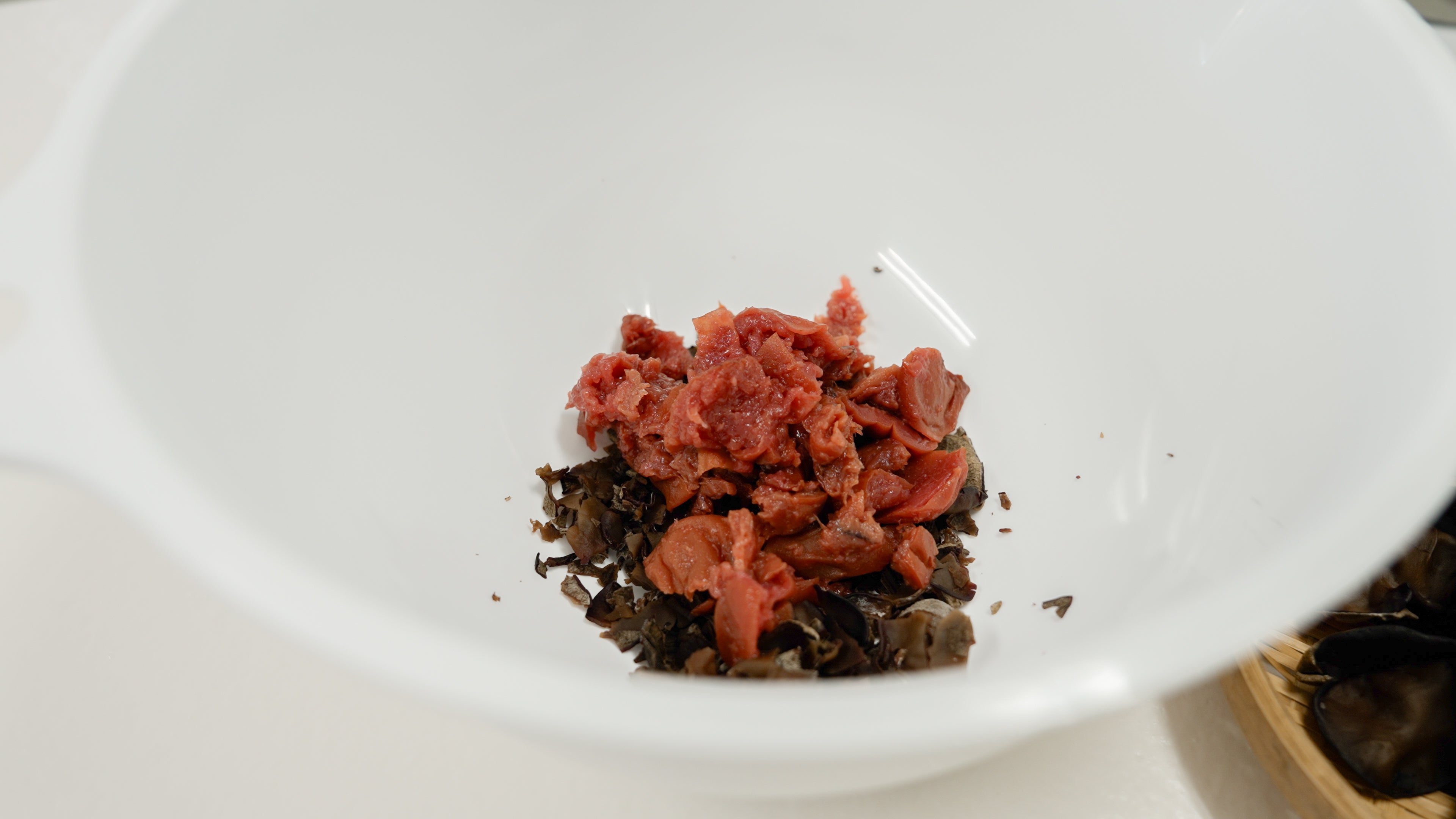 試作を重ねる中で細かく刻んだきくらげと梅肉を和えるのが一番食感が良かった
