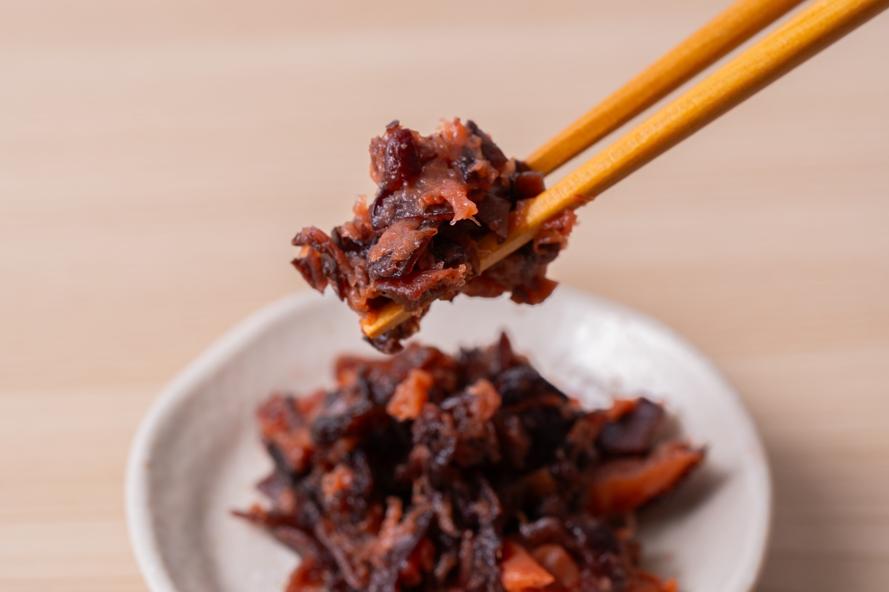 そんなことを日々悩みながら仕事をしていた時に、ふとスーパーに並ぶきくらげを見た時に、梅にきくらげのような食感が合わされば面白いんじゃないのかと思い立ちました。