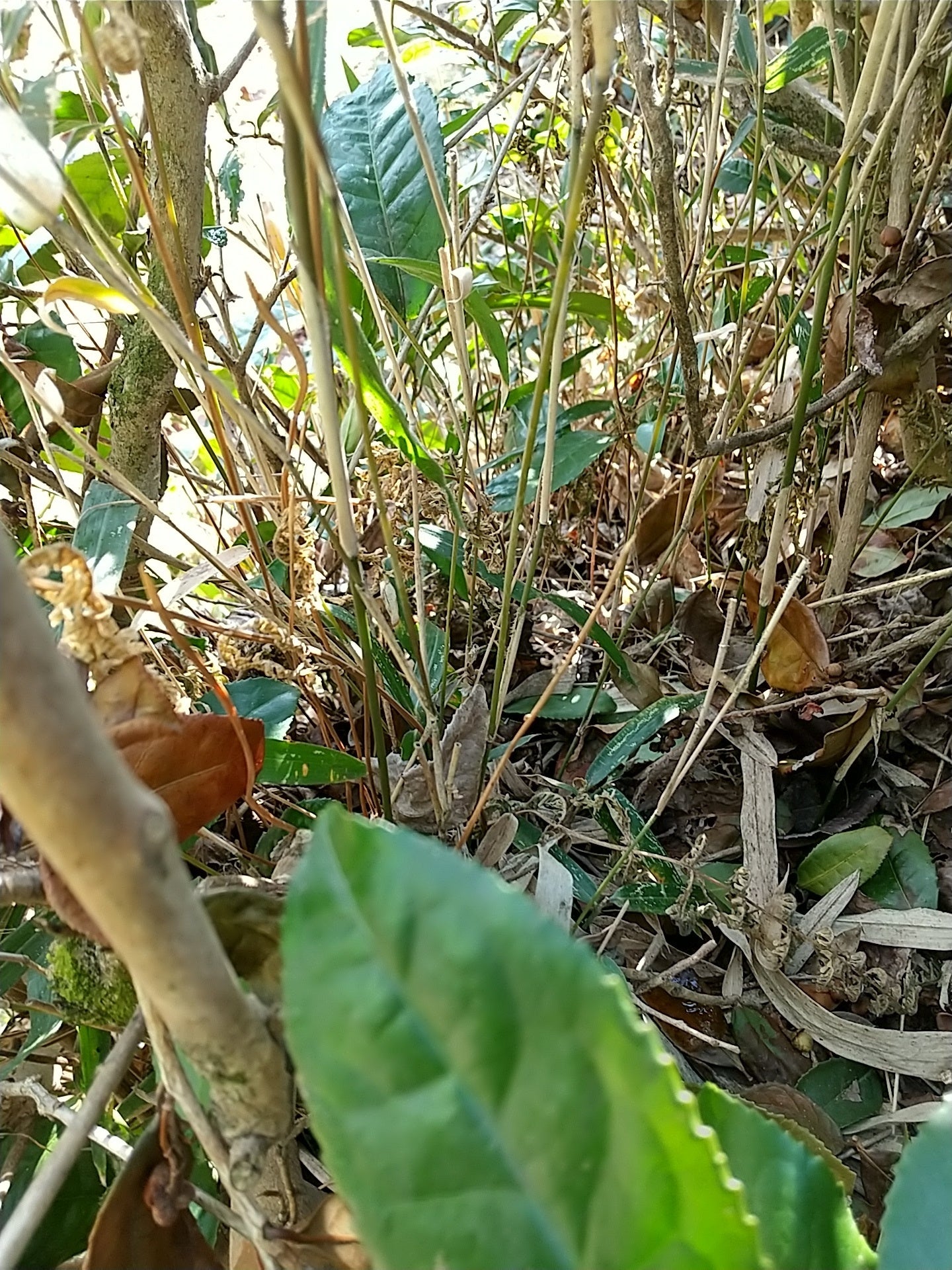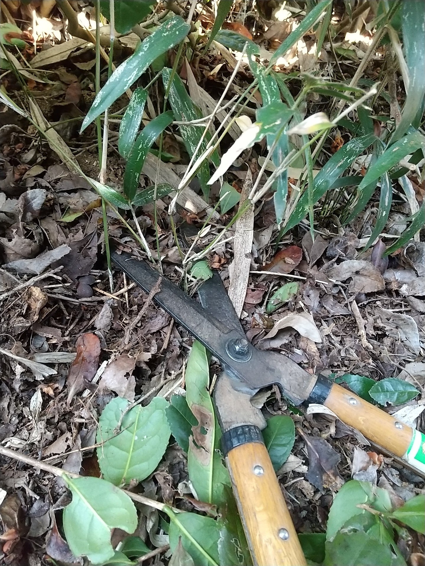 お茶の木の下から生えている笹がよく見えるようになりました。