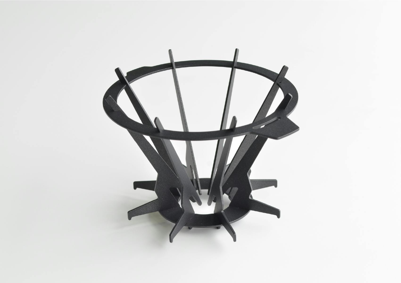 幅1.5mmの8つの羽でペーパーフィルターを支えるだけの、お湯が素直に落ちてゆくとてもシンプルな構造で、ネルドリップと同様に淹れ手の加減だけで抽出をコントロールします。