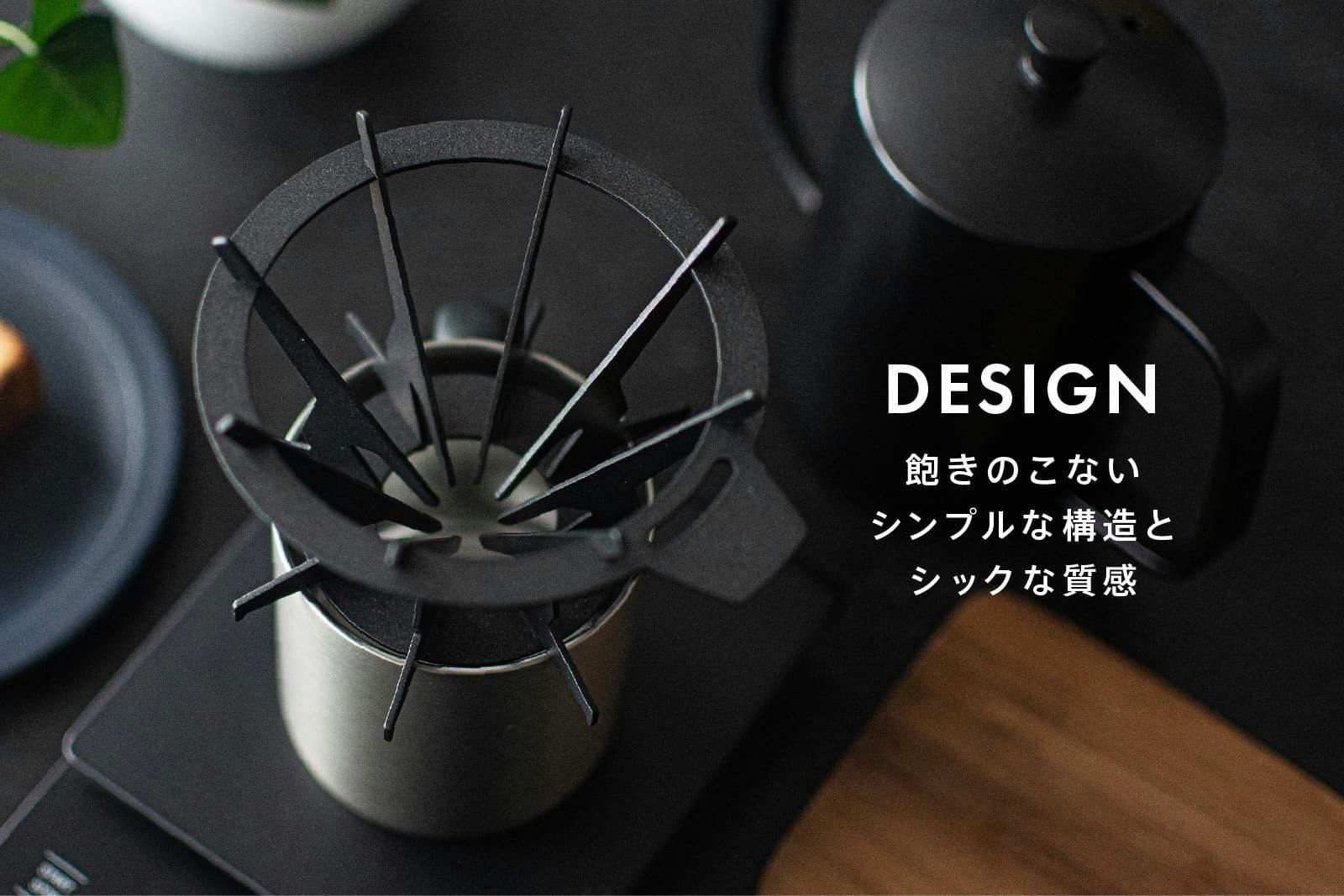 幅1.5mmの8つの羽でフィルターを支え、お湯が素直に落ちるシンプル構造で本格ドリップ
