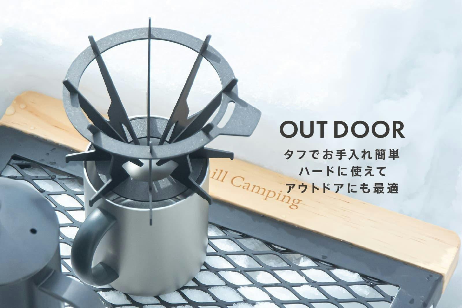オール18-8ステンレス製の堅牢性やシックな黒、フッ素樹脂塗装の質感はアウトドアシーンでも違和感なく溶け込みキャンプなどで素敵な時間を過ごせるでしょう!本格ハンドドリップはもちろん、汚れにくく片付けやすい点もアウトドアでは見逃せません。