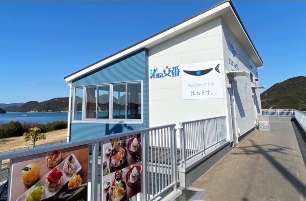 「SatoUmi テラス はぁとす。」は、2024年2月に頭島にオープンした海辺のカフェ&コミュニティスペースです。瀬戸内海を一望できるロケーションの中で、日生で水揚げされた魚介類や牡蠣をはじめ、地元食材にこだわった料理・スイーツ・ドリンクを提供しています。また1階には物販スペースを併設し、日生や頭島ならではの海産物やお土産を販売。またBBQスペースでは、新鮮な日生牡蠣などの海の恵みをその場で味わうこともできます。