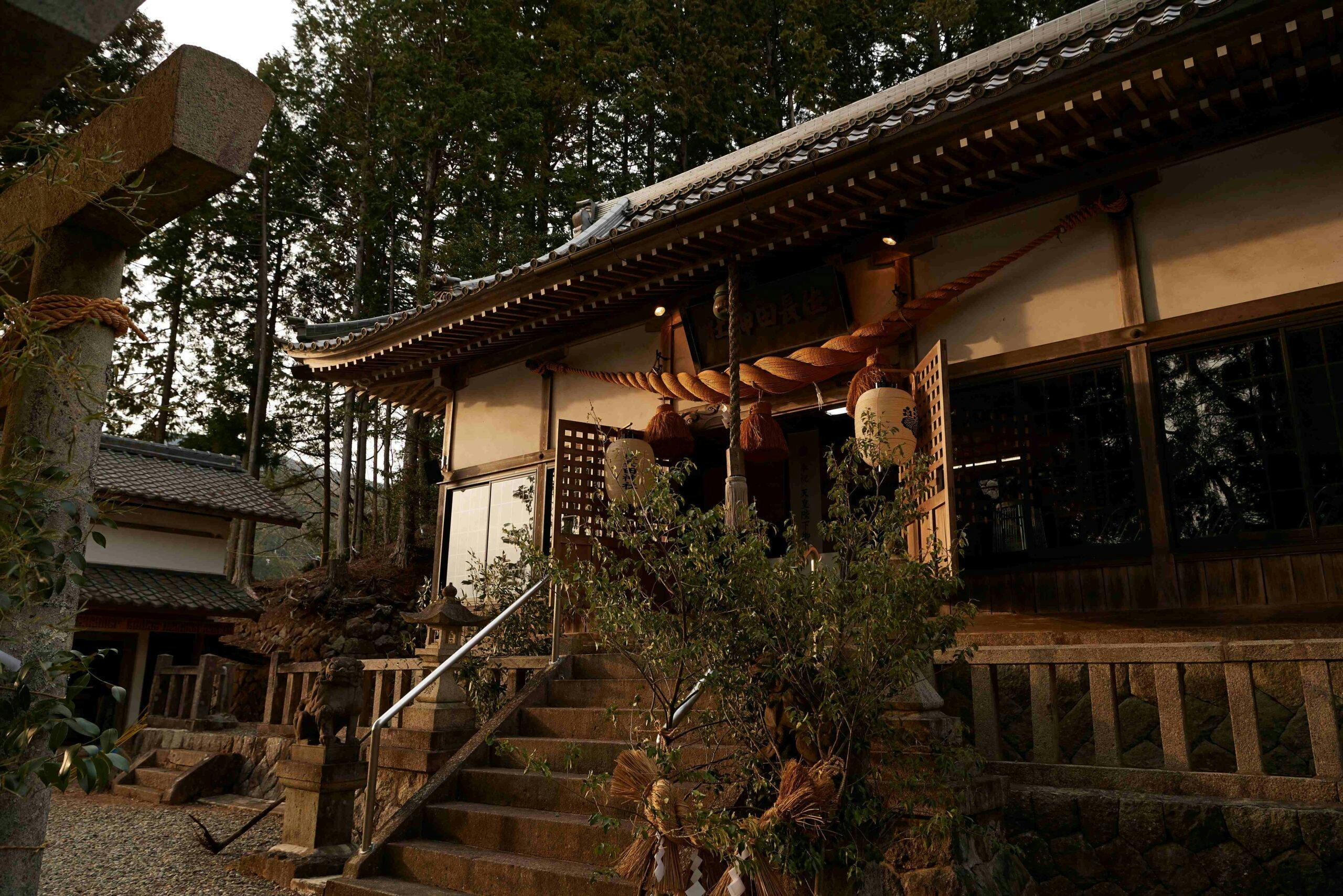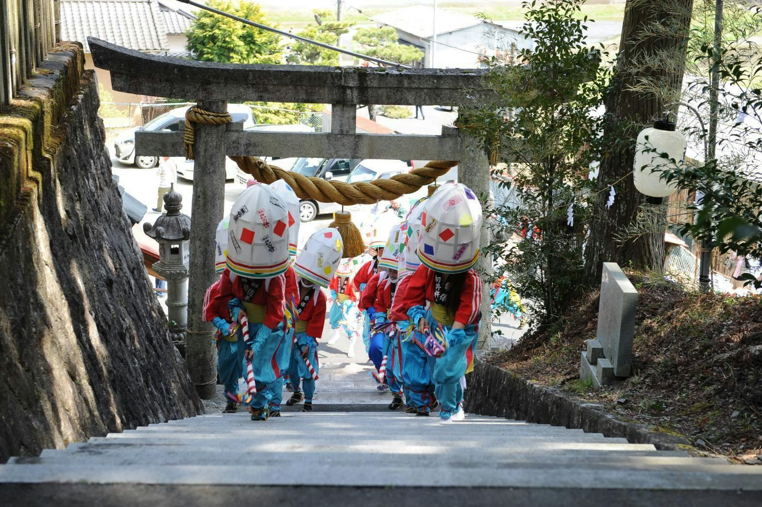 この切井地区を見守る「佐長田神社」。林の中、高い階段を登った先にあるこの場所へ、昭和2年から99年間、五穀豊穣を願い続け絶やすことなく奉納されてきた踊り。それが「切井杵振り踊り」です。
