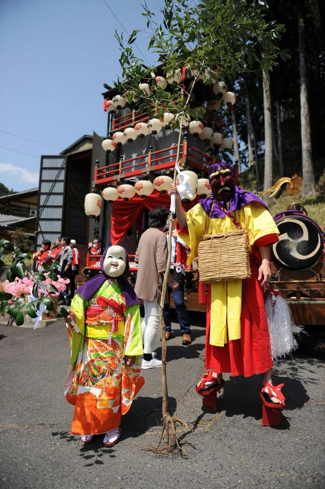 昭和2年の春から、この切井の谷あいに響き続けてきた「カン、カン」という軽快な杵の音。私たちが大切に補修しながら使っている笠や衣装、そして天狗や鬼のお面には、幾世代にもわたる切井の人々の汗と、ふるさとを愛する想いが深く染み込んでいます。