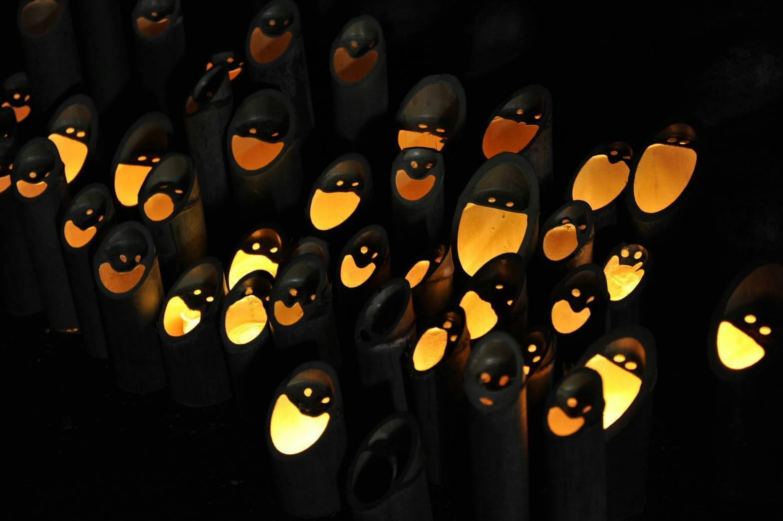 (賛助会が制作している竹灯りの様子)