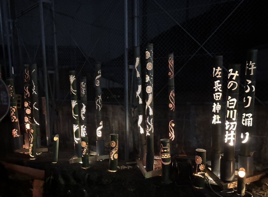 年明け頃より、祭りの準備が始まります。真冬の寒さの中を竹を切り出し、仕事の後えた夜の寒い作業小屋で暖を取りながら、地道にコツコツ作業をしていらっしゃいます。