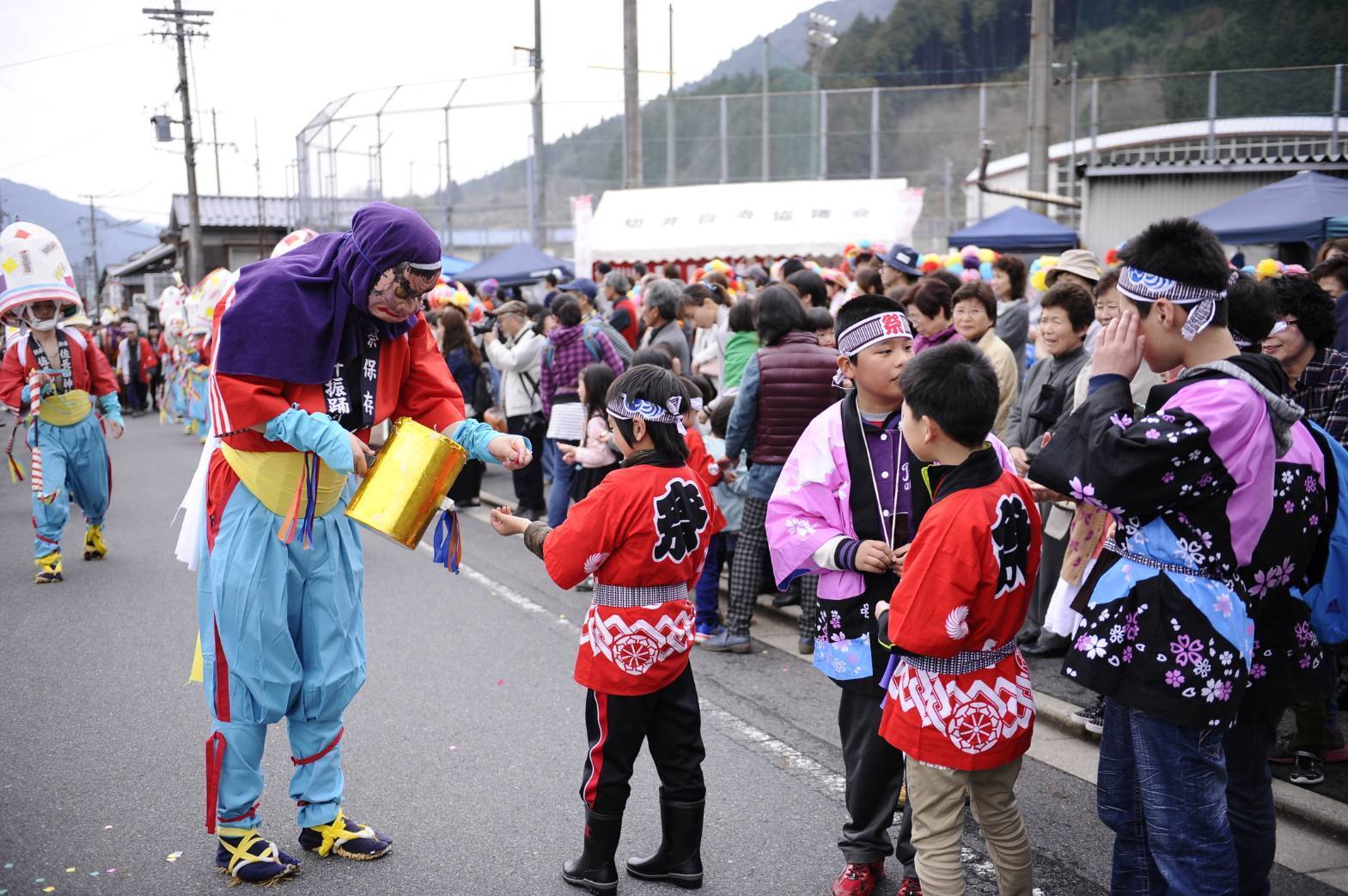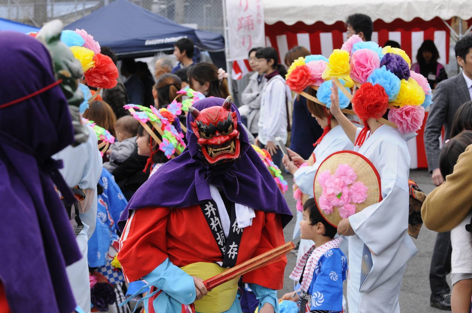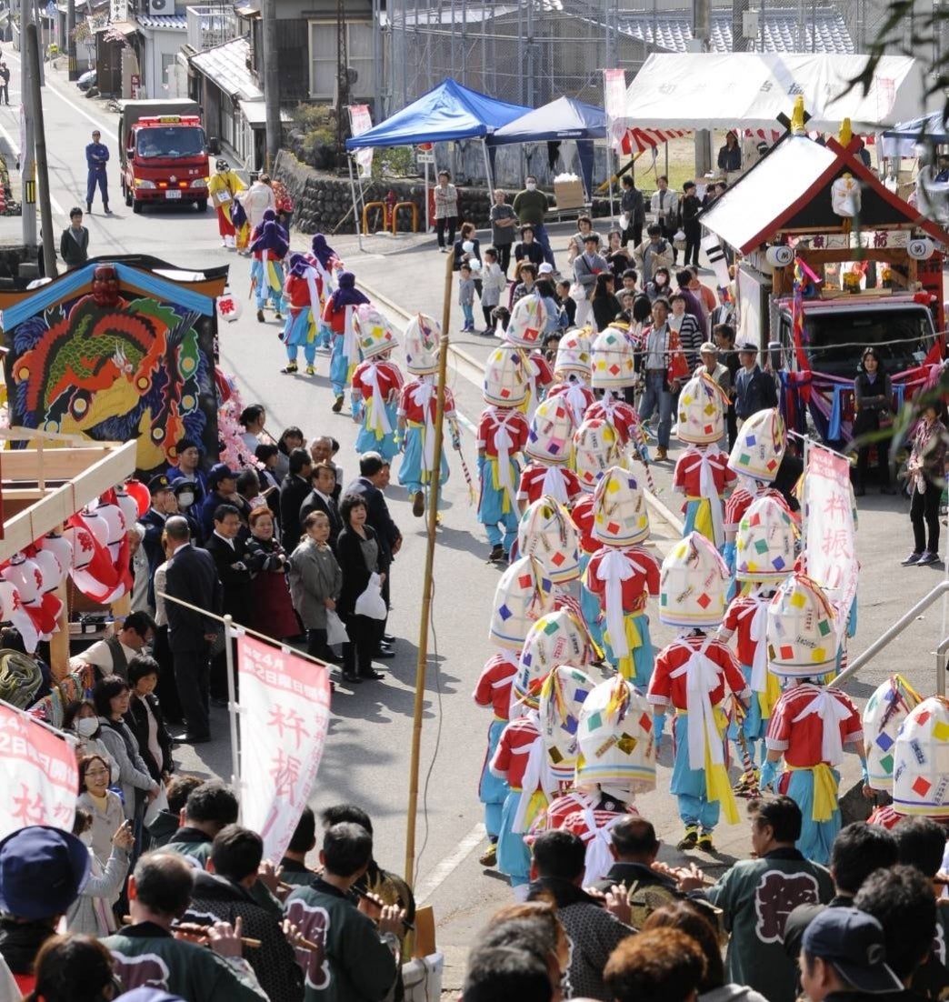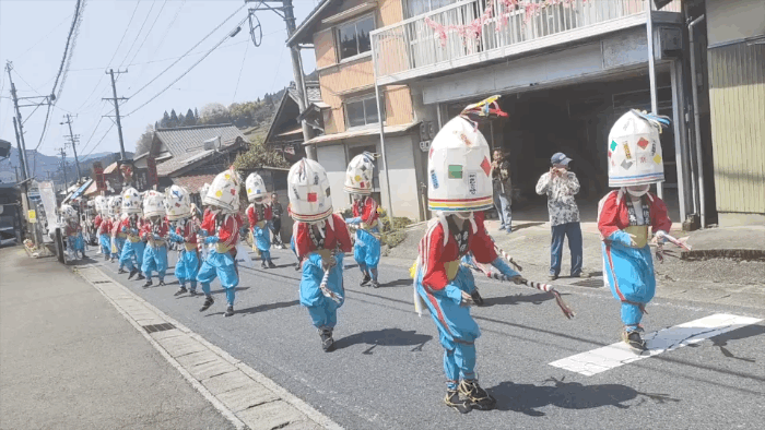 その後ろには、鬼やひょっとこのお面で軽快な踊りで春の訪れを賑わす。