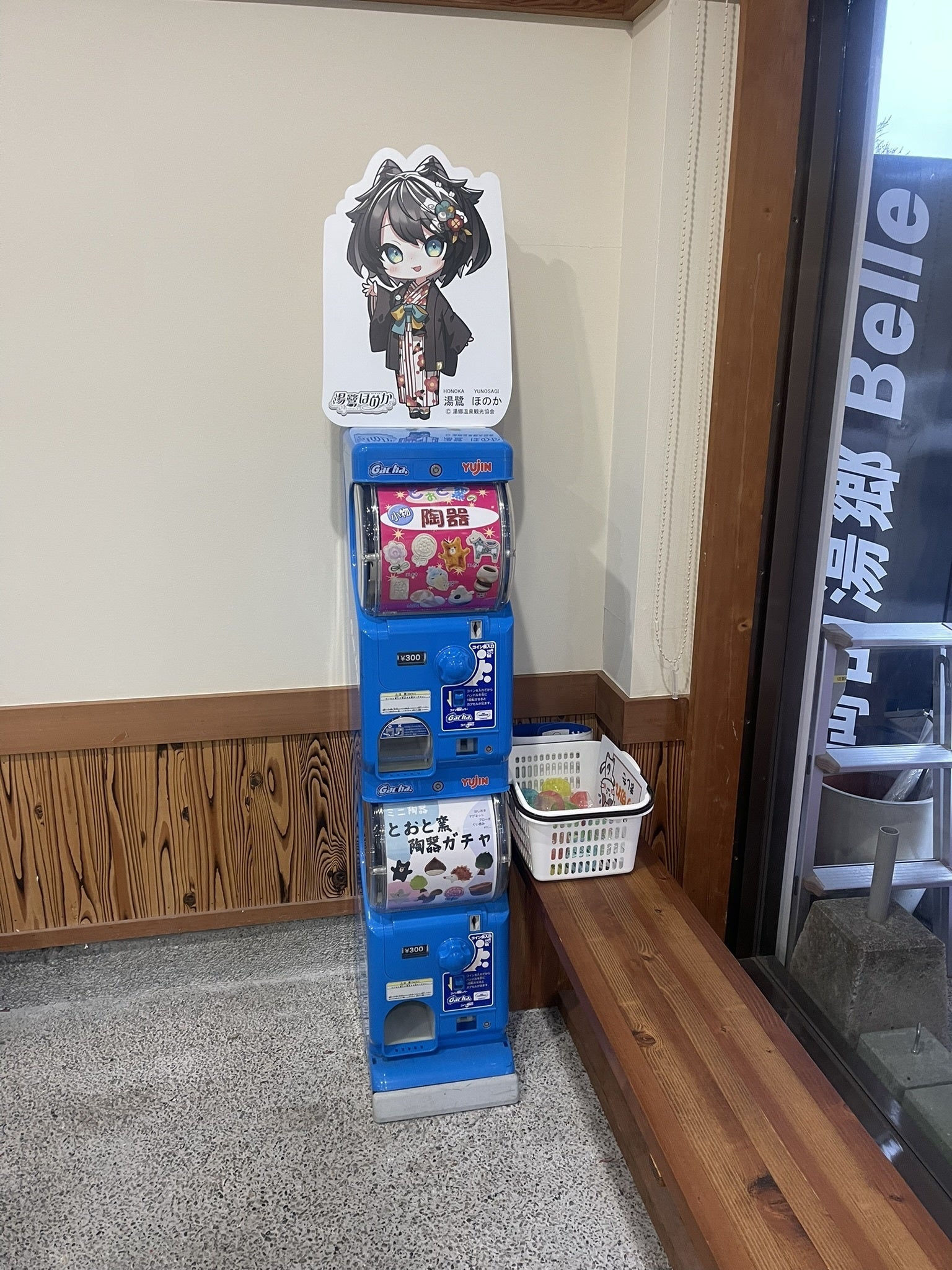 湯郷温泉観光案内所にいる、湯鷺ほのかちゃんSD浴衣パネル