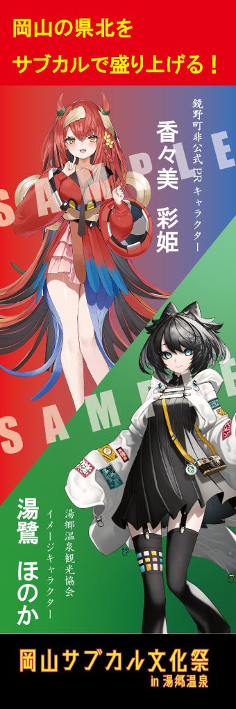 こんばんわ。いよいよ最後のご訴えの頃合いとなりました。今回は当日掲出させていただきます幟についてご案内させていただきます。将来的な連携を見据えまして、湯鷺ほのかちゃんとコラボ相手という2連幟を5種類、3/22(日)に鳥取県倉吉市にて開催されます『ポップカルチャーフェスティバルin倉吉』さんとも今回ご縁あってコラボさせていただいておりますので、倉吉さんサイドの『倉吉ユリカちゃん』と『新倉こはる』ちゃんの2名を交えた、6名の集合パターンもご用意させていただきました。6人となると壮観ですね・・・!ちなみに全員集合と、ほのかちゃん&倉吉ユリカちゃん、ほのかちゃん&新倉こはるちゃんの3パターンは、1枚ずつポップカルチャーフェスティバルさんに進呈させていただくことになっておりますので、3/7開催の岡山サブカル文化祭in湯郷温泉2026と3/22開催のポップカルチャーフェスティバルin倉吉の両方でこの幟をご覧いただけるかと思います。ご当地IPは県境の壁を越えられる!ご当地IPを通じて鳥取と岡山に新たな観光動線が構築できれば、より一層地域が盛り上がると思います・・・! もっと見る