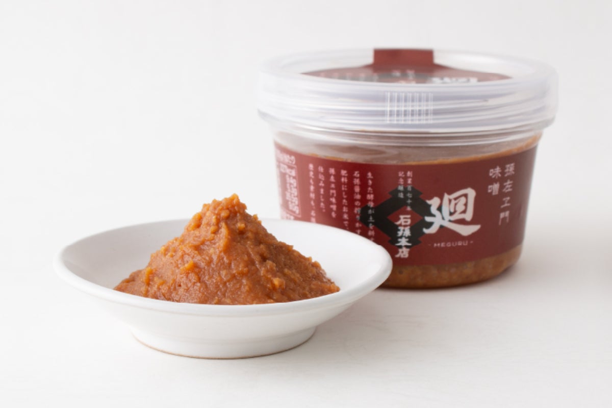 今回開発した商品「孫左ヱ門味噌 廻─MEGURU─」は、この高橋さんの田んぼで作られたお米を使用。石孫が生み出した「醤油粕」を有効に活用し、高橋さんが農薬を使わずに元気で丈夫な田んぼの土を作って、米づくりを行う。その米を使い、石孫が新しい味噌を作る。