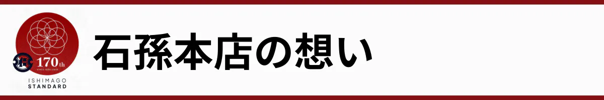 その決意をお伝えしたく、170周年記念商品を開発いたしました。170年目の石孫本店。新たなことへも挑戦しております。ぜひ一度、ご賞味ください。