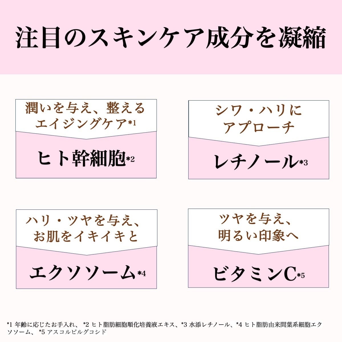 ✔️ヒト幹細胞培養液(ヒト脂肪細胞順化培養液エキス):豊富に含まれるGF(成長因子)が保湿効果があり、ケアエイジングケア*1にもおすすめ。