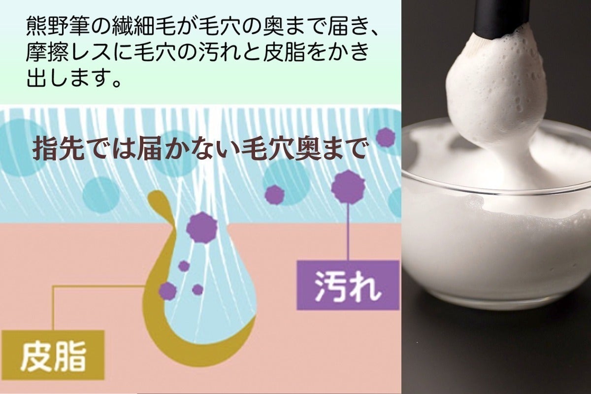 【セットでオススメ】熊野筆洗顔ブラシですぐ泡立つので、洗顔の時短にもなる。