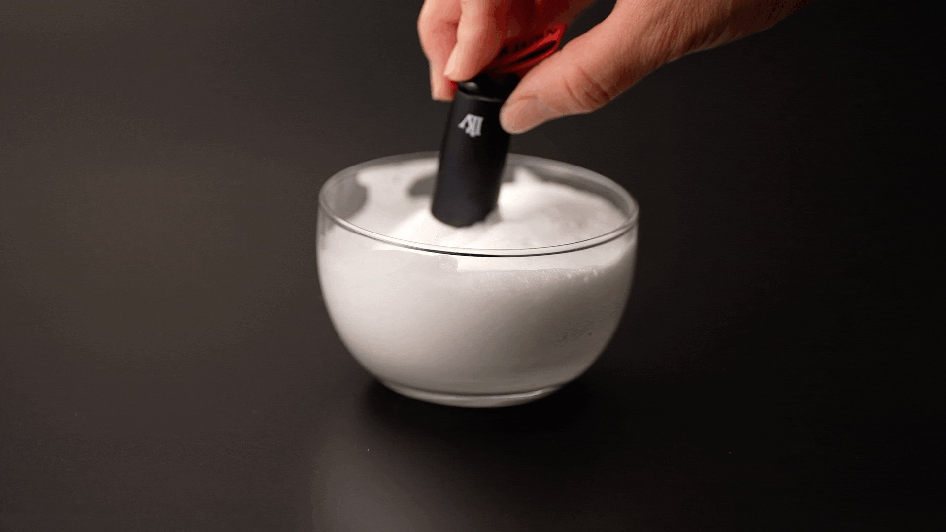 ②クルクル回すように混ぜながら泡立てます。(手のひら上でもOK)