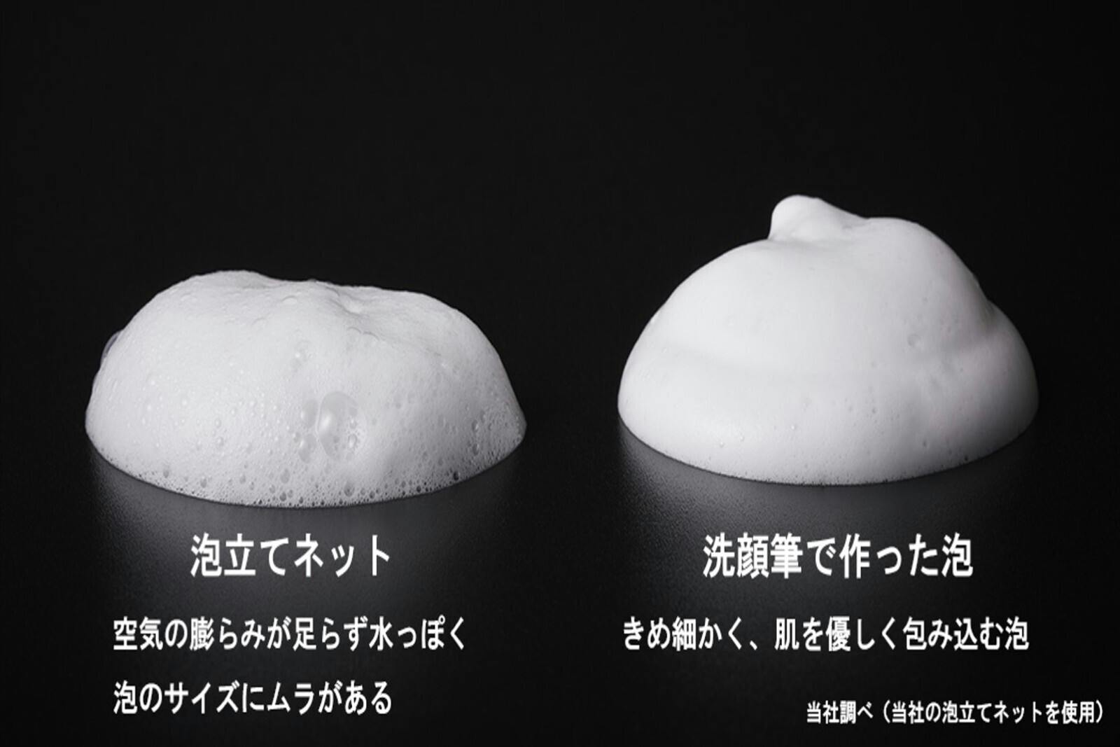「コシのある毛が汚れをかき出し、柔らかい繊細毛が濃密泡を運ぶ。この黄金比が、"スルン"と落ちる秘密です。」