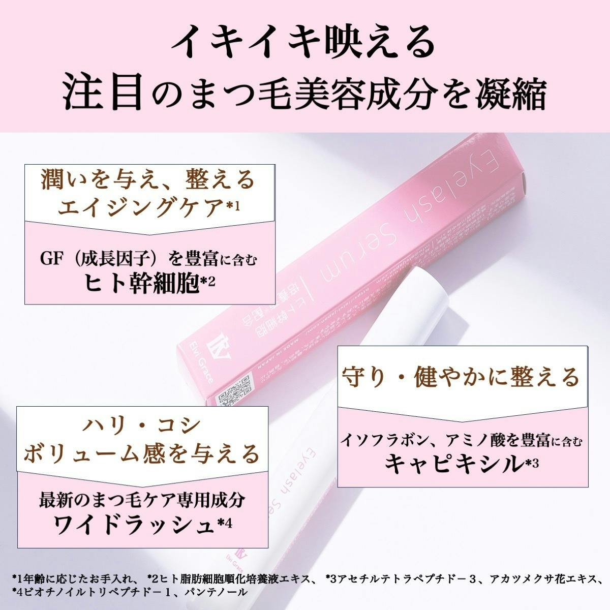 まつ毛に注目した成分がうるおい、ハリ、コシを与えます。