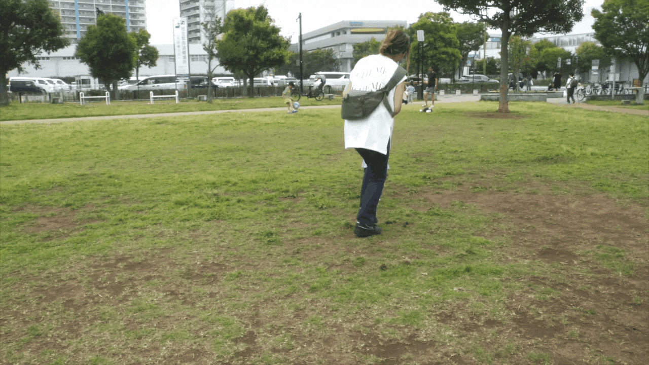 手で押さえなくても、身体に沿うデザインなので動きやすい。