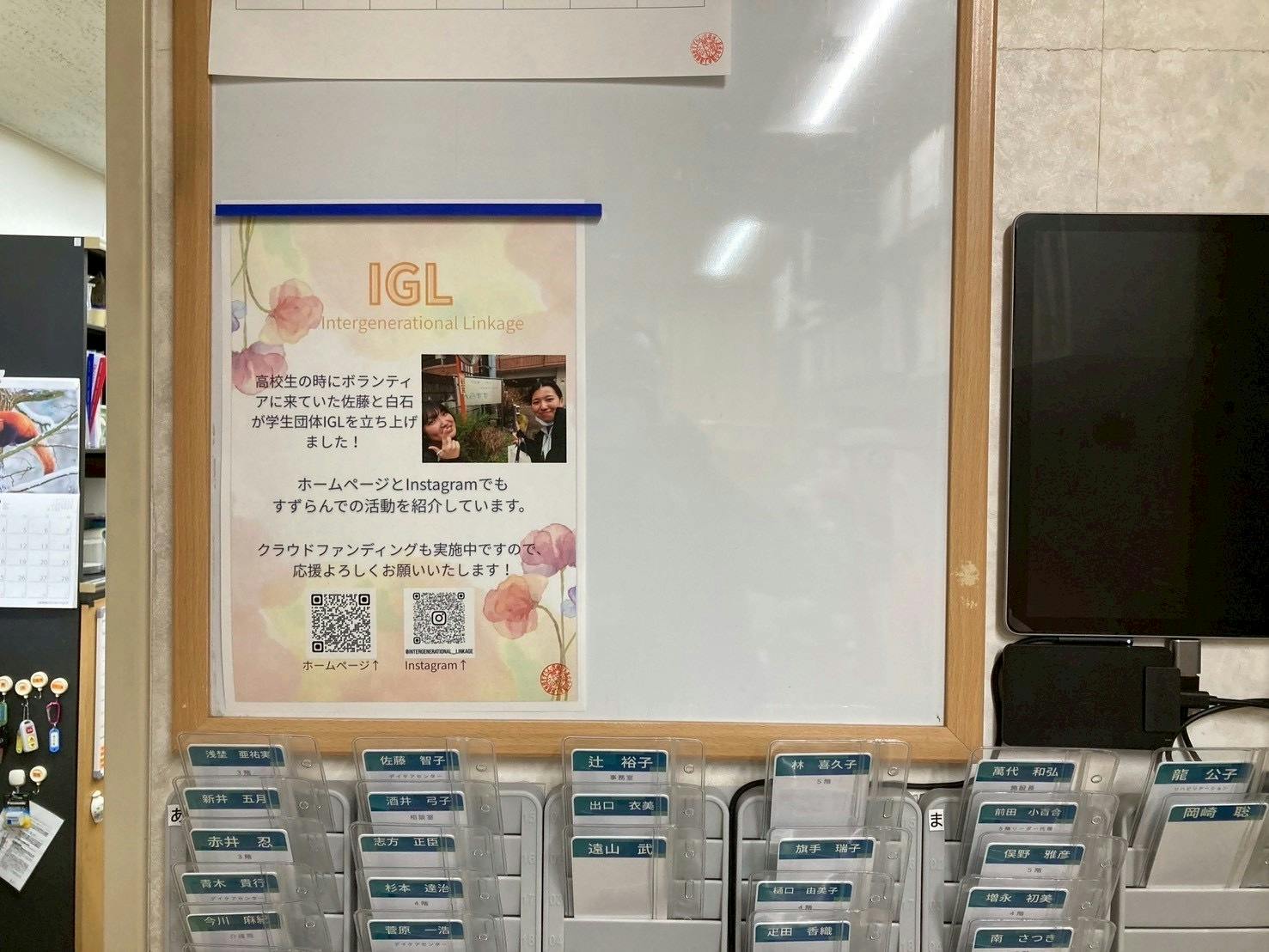 介護老人保健施設すずらん(@rouken.suzuran)様の館内にて、IGLの宣伝ポスターを掲載させていただいております。