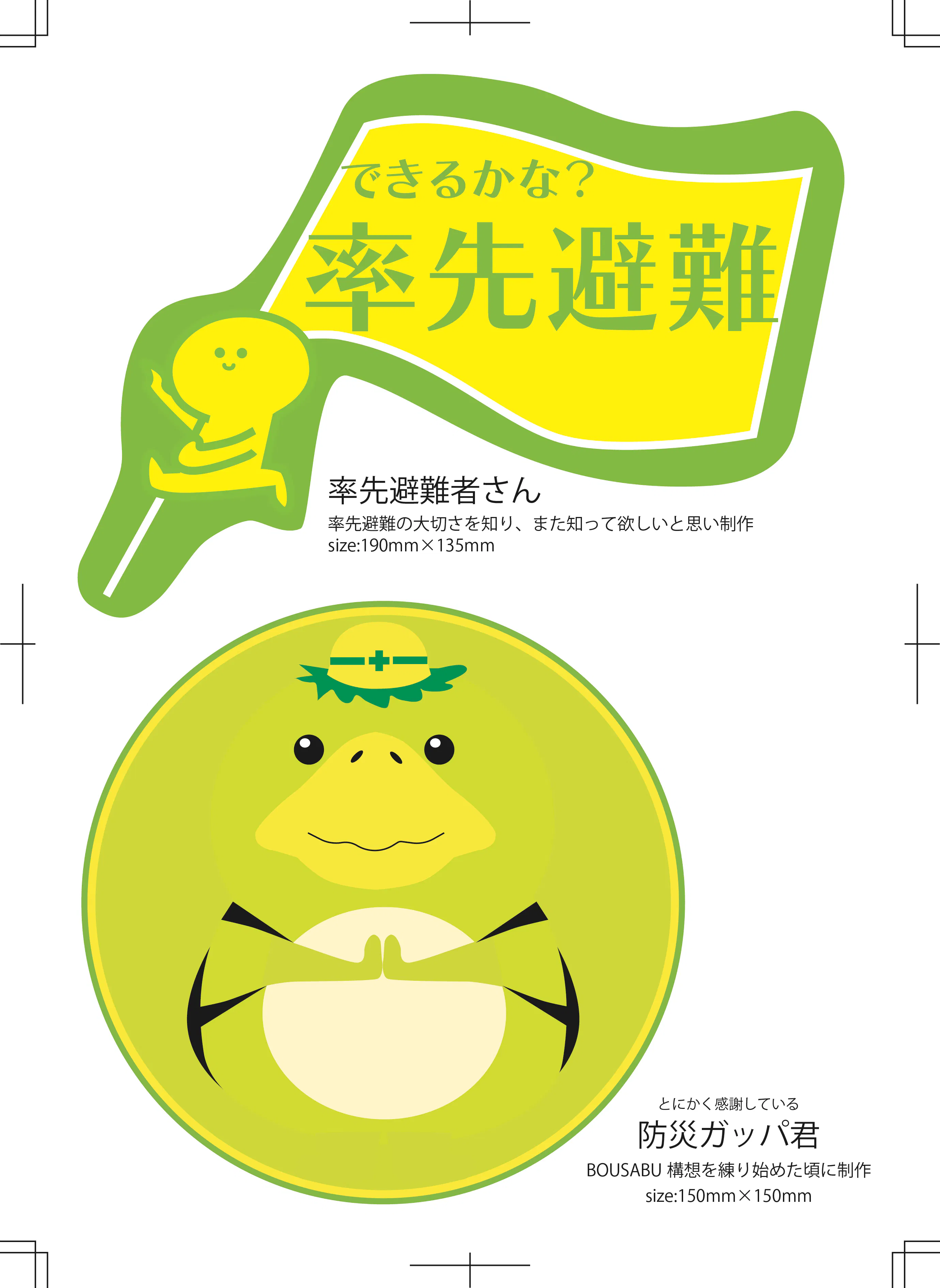 率先避難という言葉を知った際、その重要さを痛感し、また多くの人がこの言葉を知る事で逃げ遅れる方が減ったら…という思いで制作。