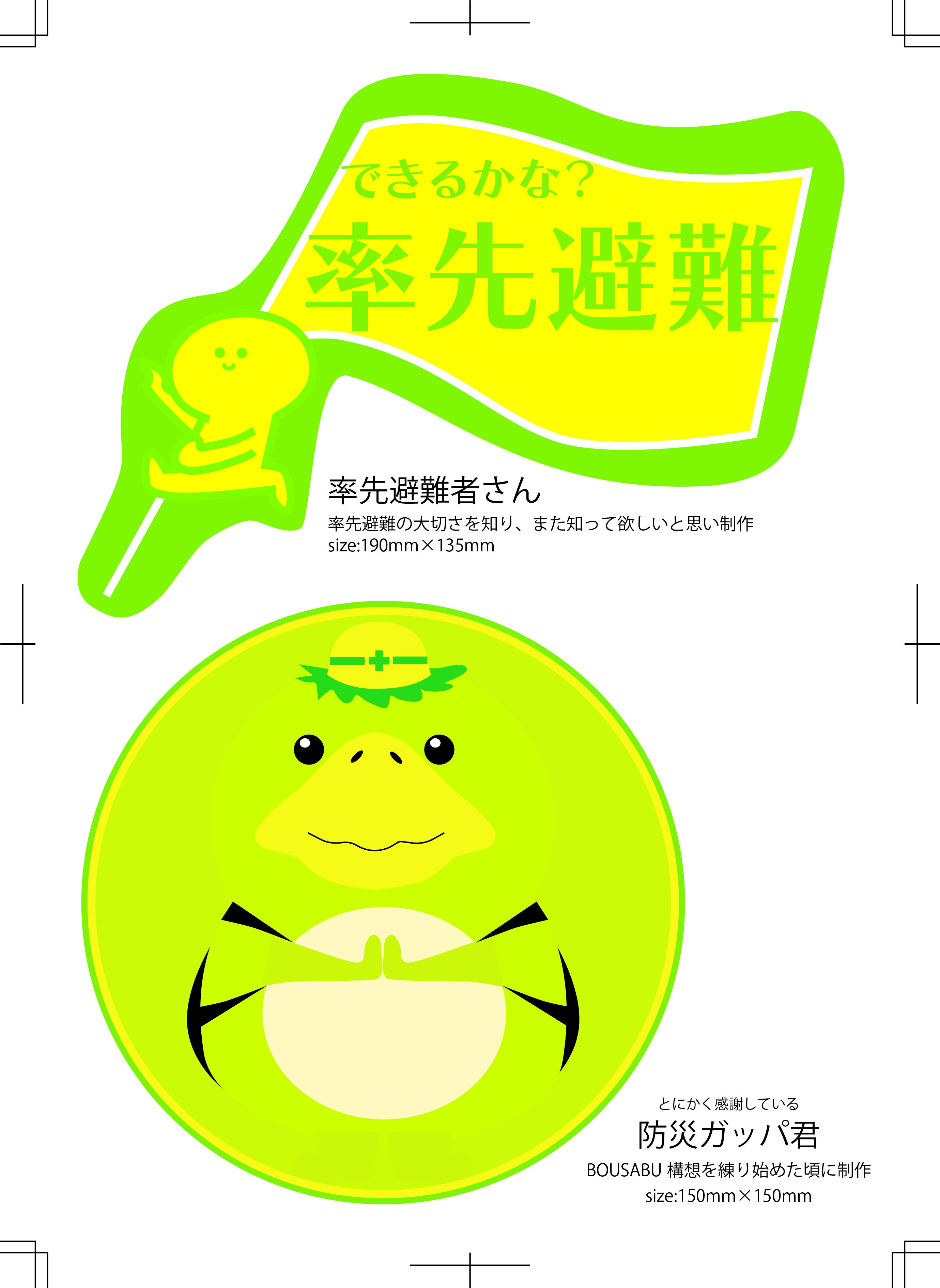 率先避難という言葉を知った際、その重要さを痛感し、また多くの人がこの言葉を知る事で逃げ遅れる方が減ったら…という思いで制作。