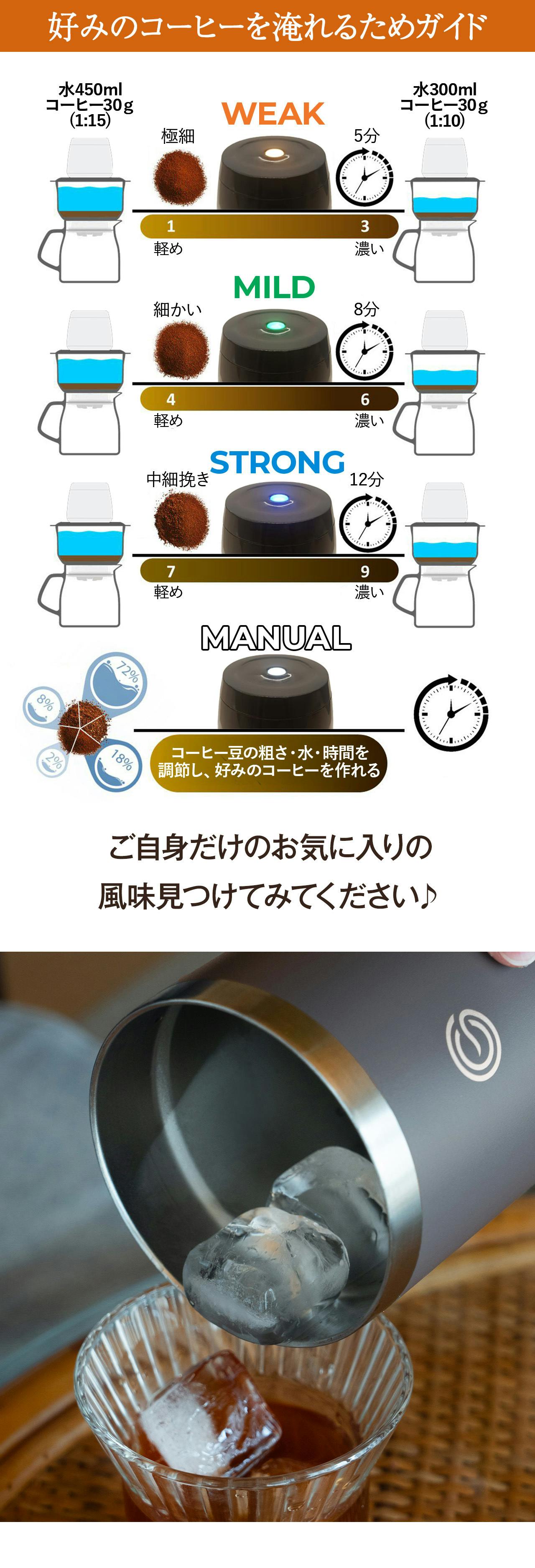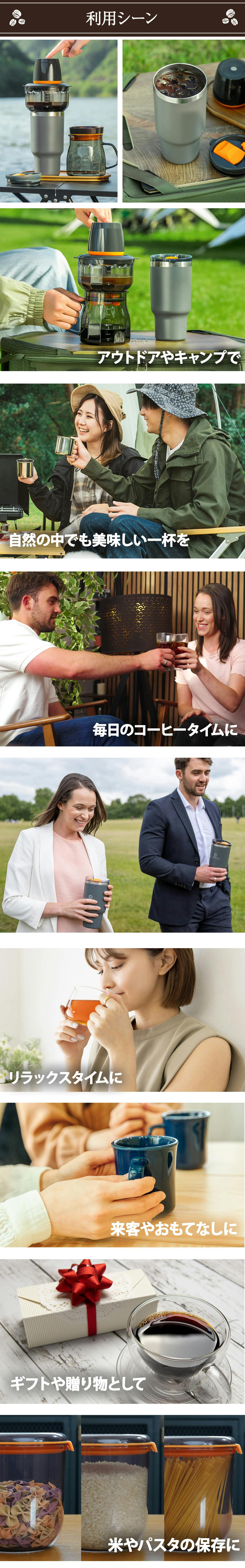 忙しい朝やアウトドアでの冒険に最適なVacBrew To Goは、タンブラーの中で滑らかで風味豊かなコールドブリューを簡単に作ることができます。