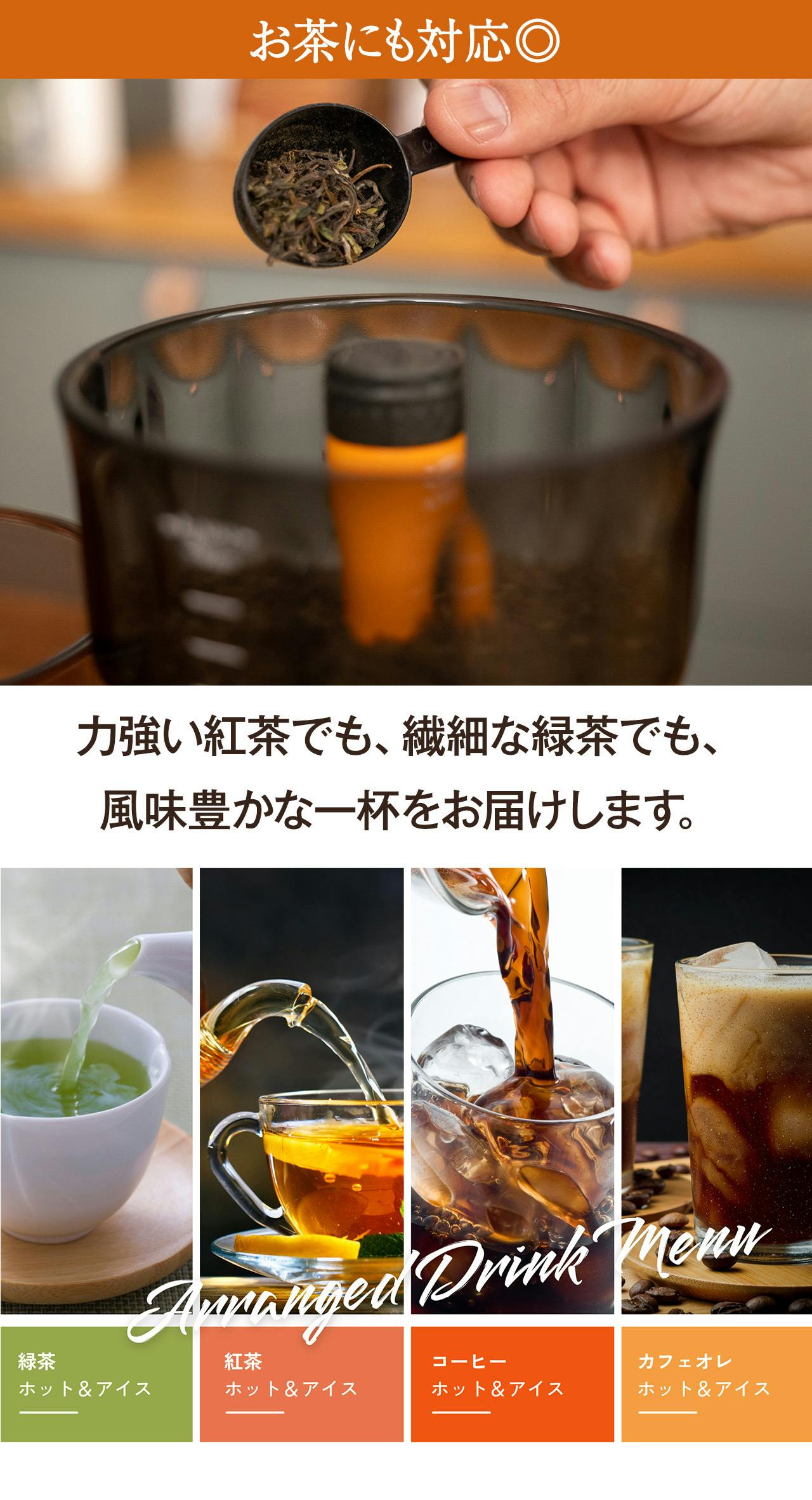 A. はい、VacBrewは多機能で、コーヒーと紅茶の両方を淹れることができます。プログラムが抽出プロセスを調整し、茶葉やコーヒー粉の風味を最大限に引き出します。