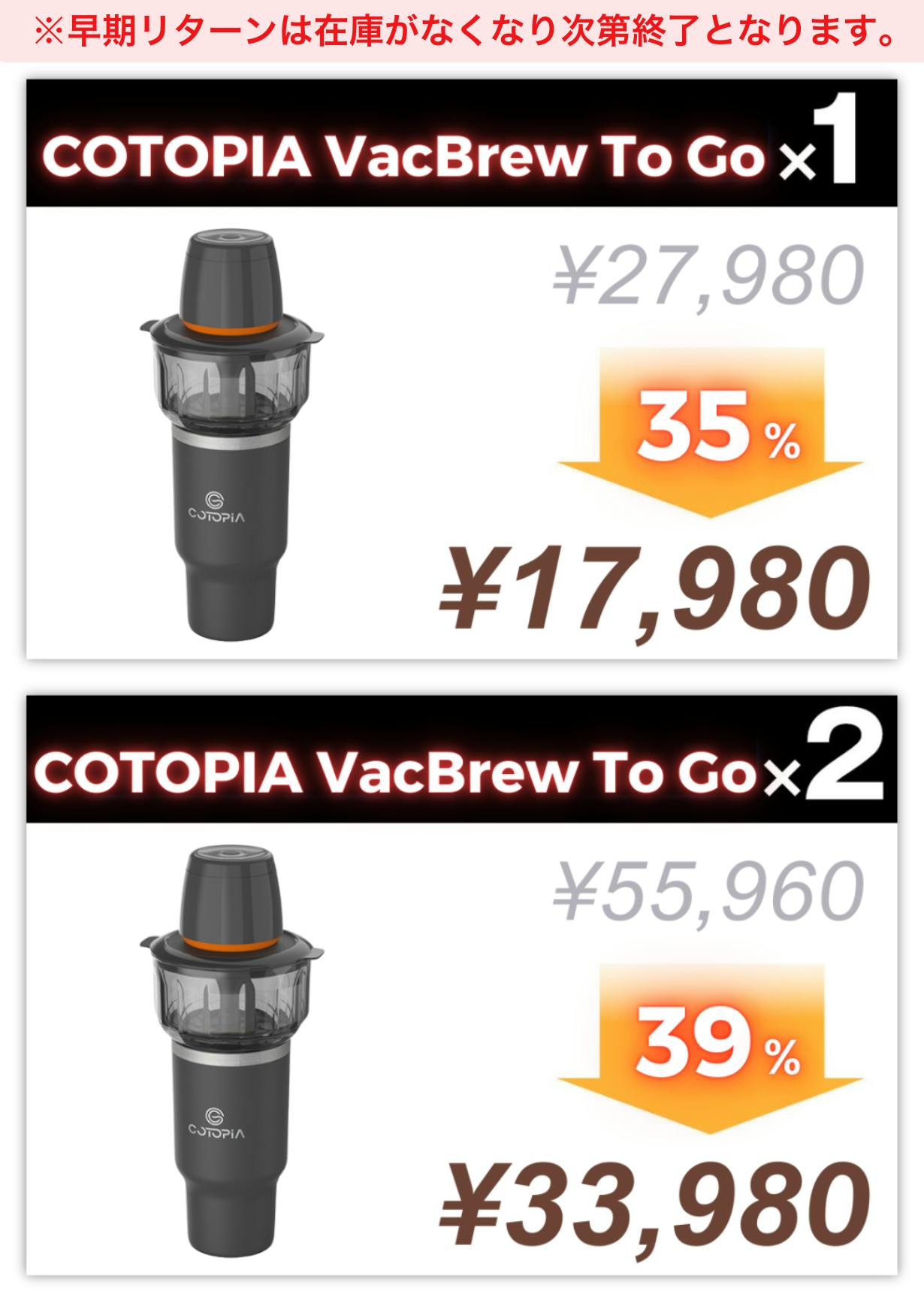 ・VacBrew To Goをより多くの方に知っていただくためのプロモーション費用