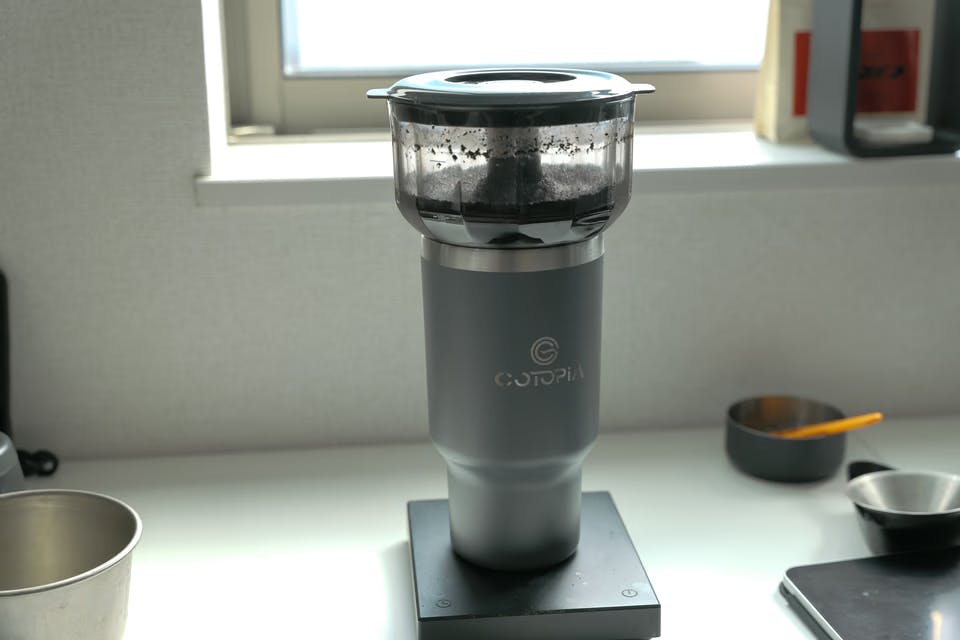 途中で紹介したとおり、製品にはタンブラー兼用サーバーが付属するので淹れたてをそのまま持ち出せるのも魅力のひとつ。〉