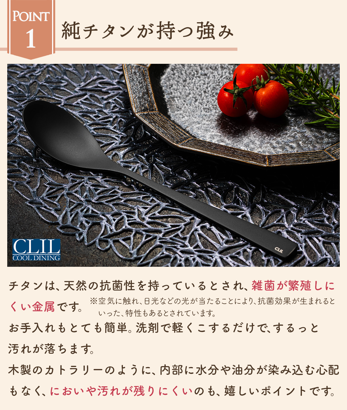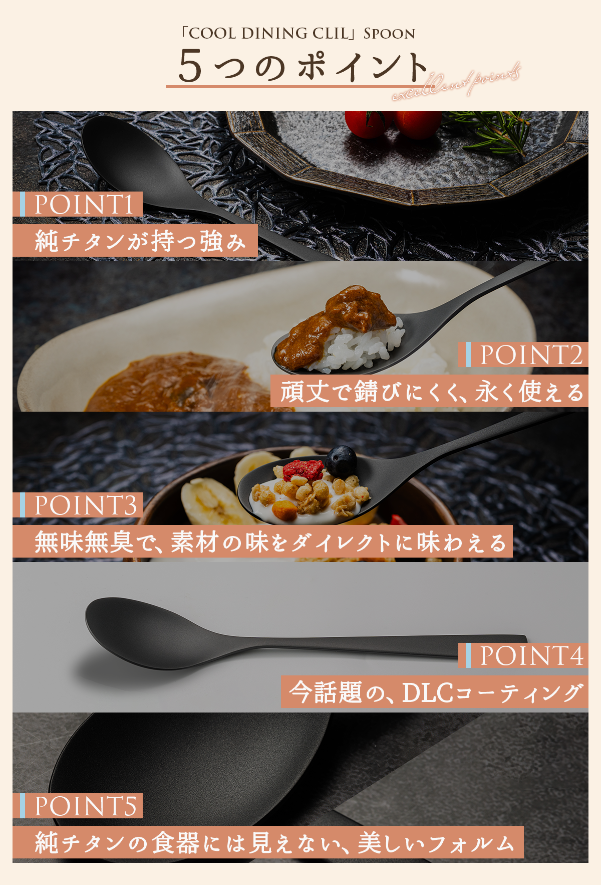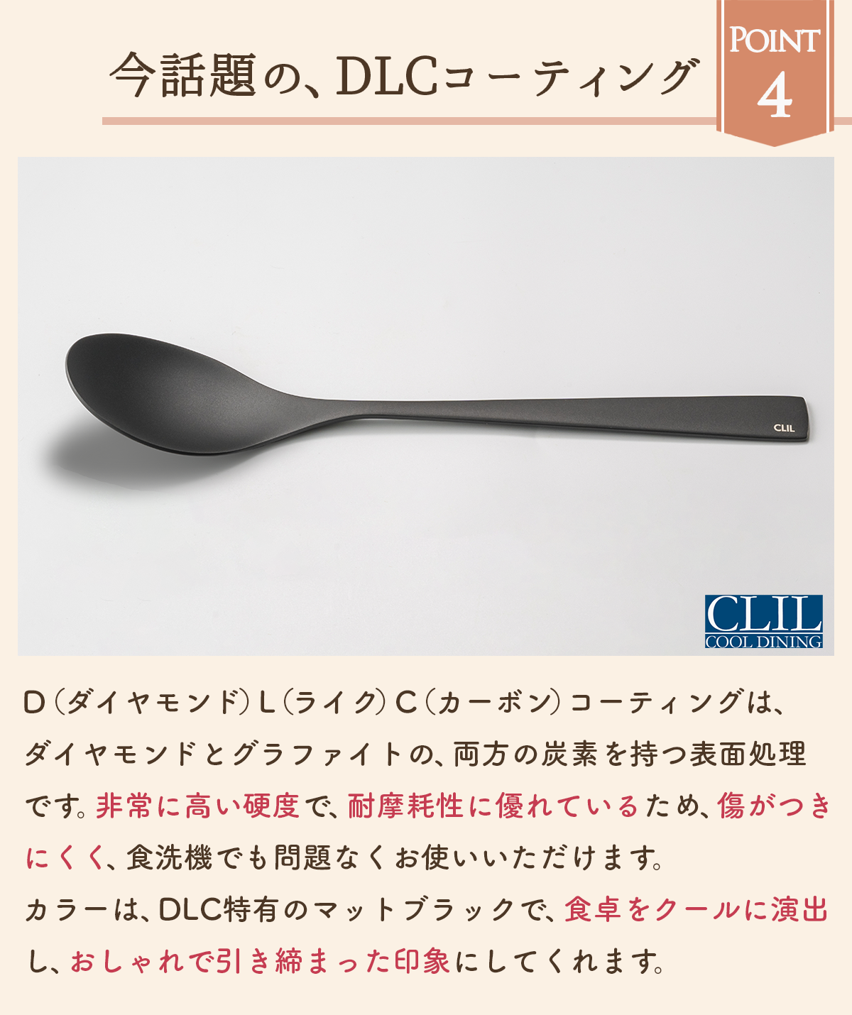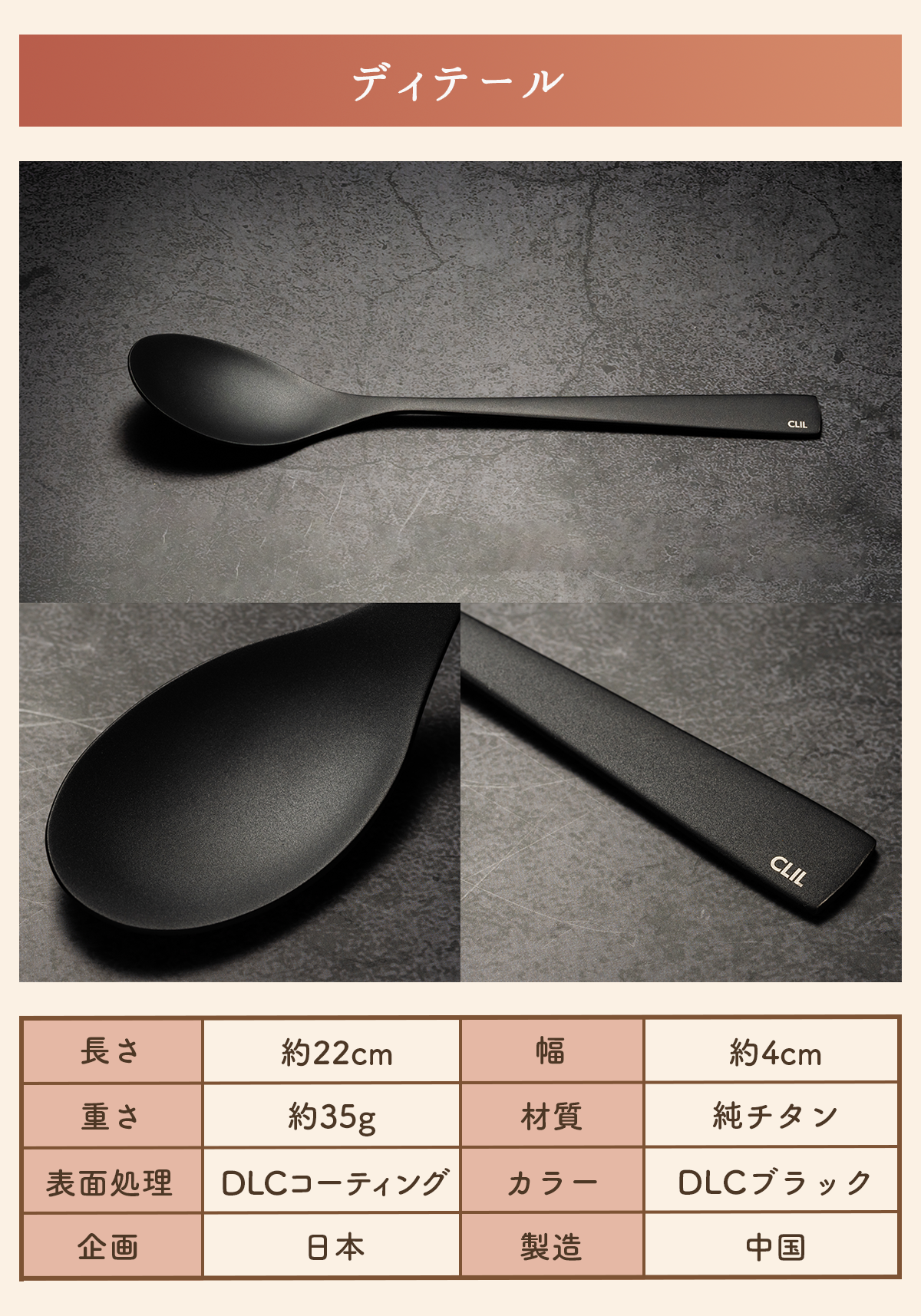 今回は、「COOL DINING CLIL」から、純チタンDLCコーティングの「スプーン」のご提案です。